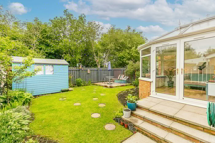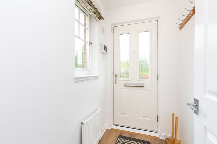 On the first floor, a master bedroom overlooks the rear garden, and features a built-in mirrored wardrobe, carpeted flooring and a stylish, fully-tiled shower room with a two-piece suite and a corner cubicle. Two further bright bedrooms are set to the front, also with carpeted flooring and built-in storage.