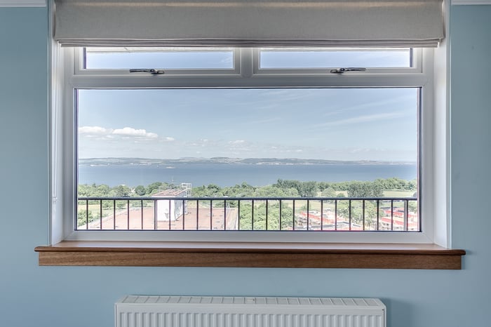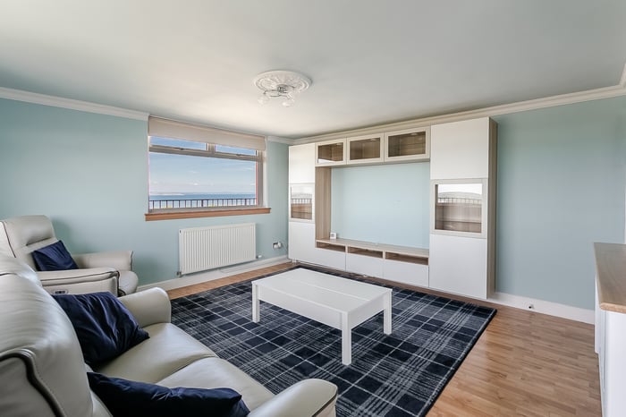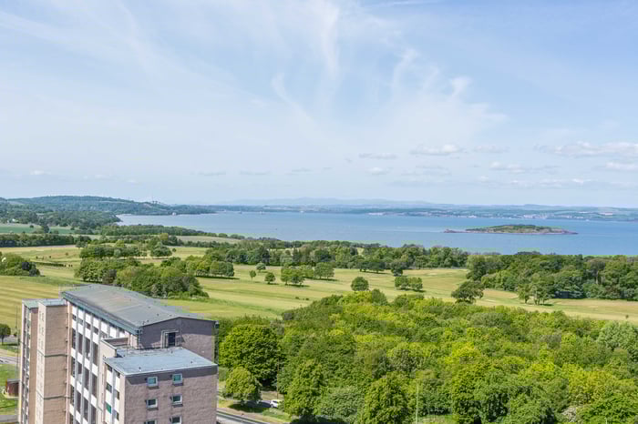 Bright and tastefully presented, two-bedroom, dual aspect, 18th-floor flat, with breathtaking panoramic views from its wraparound balcony. Forming part of an established residential development, located in the Muirhouse area, just north west of Edinburgh city centre. A welcoming entrance affords access throughout the property, including two convenient storage cupboards.