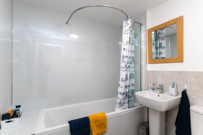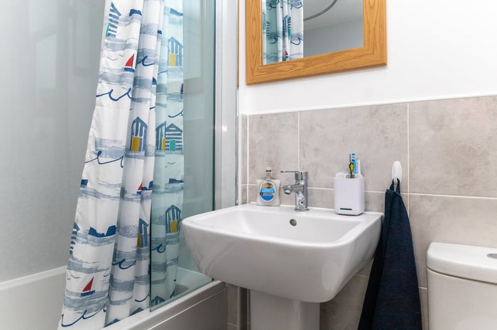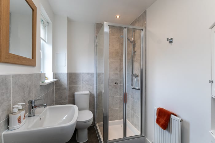 Completing the accommodation, the family bathroom is fitted with a modern three-piece suite including a shower over the bath, and panelled and tiled splash walls.