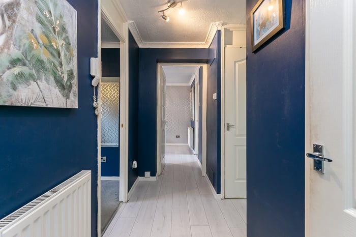 Tastefully presented, one-bedroom, dual-aspect, first-floor flat, forming part of an established, factored, residential development. Set off-street, with a shared green to the front, located in the popular Kinning Park area, just southwest of Glasgow city centre. A welcoming entrance hall affords access throughout the majority of the property and features two walk-in storage cupboards.