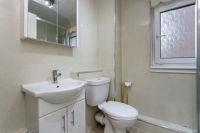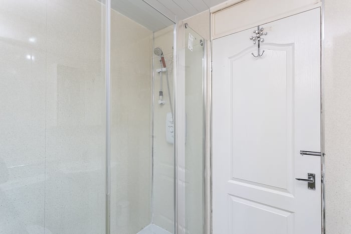 Set to the front, the bedroom offers a spacious room with carpeted flooring; whilst to the rear, the shower room is fitted with a modern suite including a large shower cubicle with an electric unit and panel splash walls.