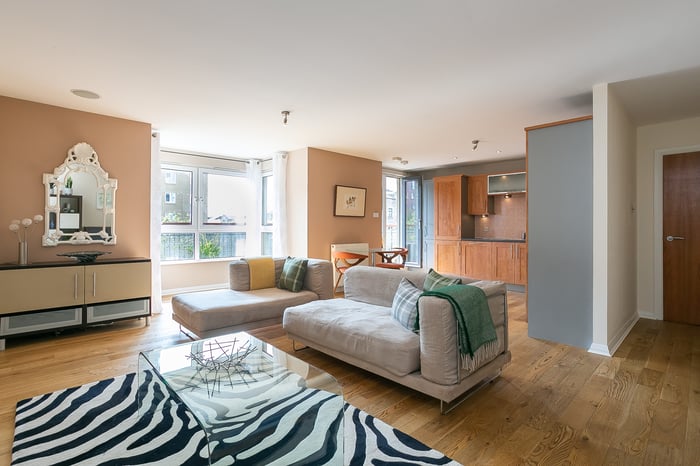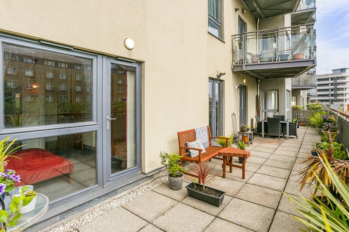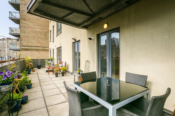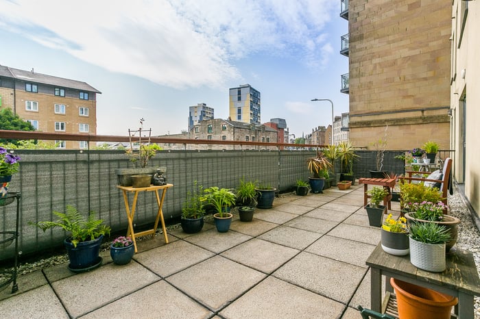 Beautifully presented and spacious, two-bedroom, first-floor quayside apartment, with an exceptional southerly facing private terrace. Set in a modern, factored residential development, located in the fashionable Leith area, north of Edinburgh city centre.