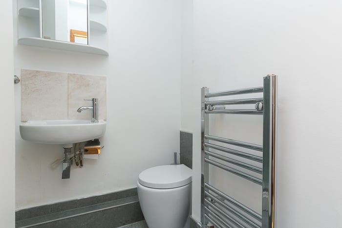 Completing the accommodation, set off the inner hall, the shower room is fitted with a modern suite, a mains mixer shower with marble effect panelling, and a ladder-style radiator.