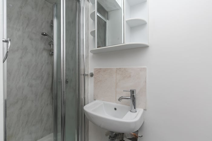 • Comprises an open-plan living room and kitchen, an inner hall, a bedroom and a shower room.