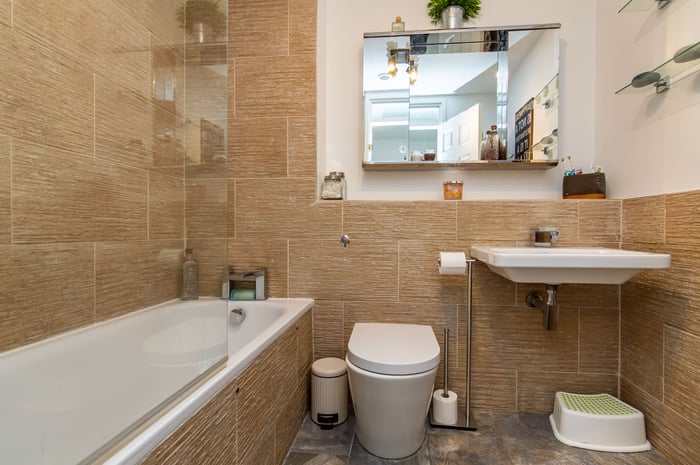 Completing the accommodation, the well-appointed bathroom is fitted with a modern, white three-piece suite with an electric shower over the bath, tiled flooring and walls and a chromed ladder-style radiator.