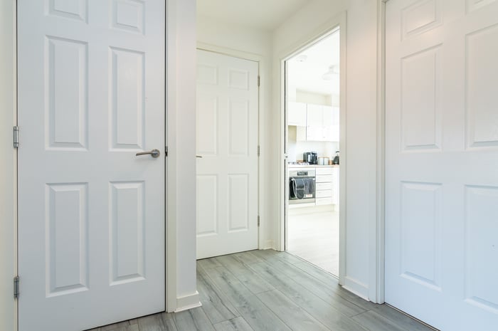• Immaculately presented, two-bedroom, dual-aspect flat on the second floor of a modern, factored apartment block.