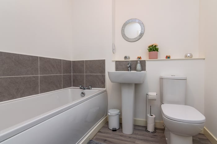 Whilst bedroom two is set to the rear, similarly well-sized, with carpeted flooring and a central light fitting. Completing the accommodation, the bathroom is fitted with a contemporary three-piece suite.