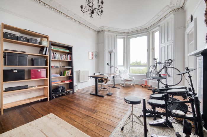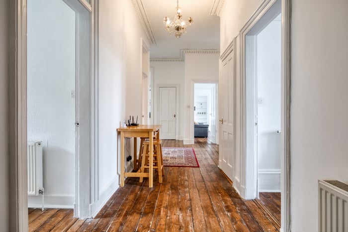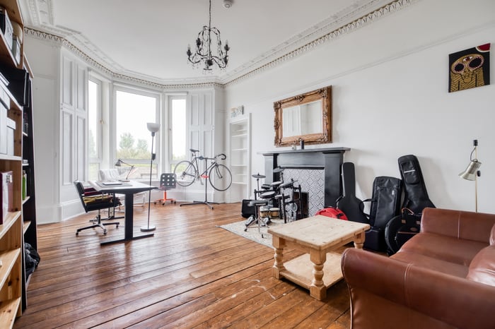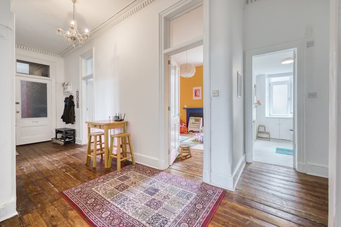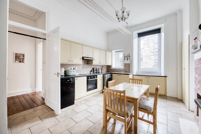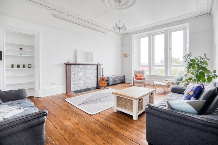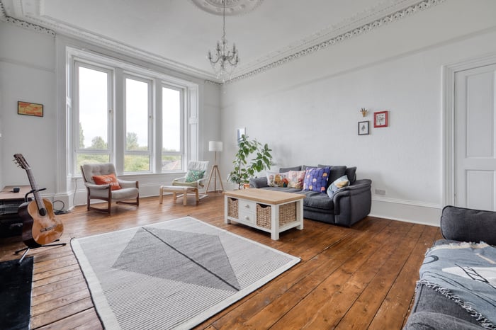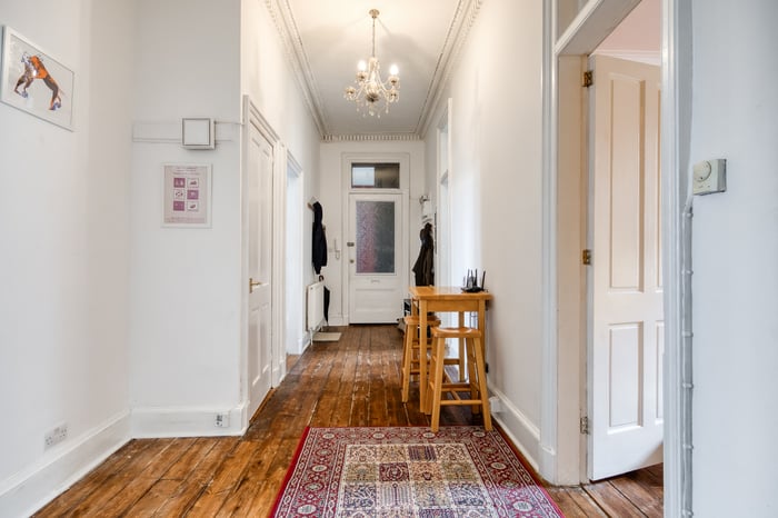 A bright, generously proportioned, and stylishly presented four-bedroom flat. Situated within a traditional stone-built tenement in the sought-after Mount Florida area. A welcoming entrance provides access to all rooms, with wood-effect flooring flowing throughout.