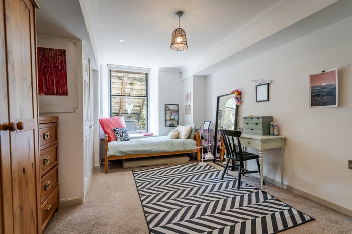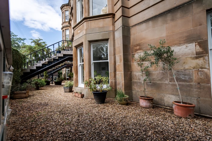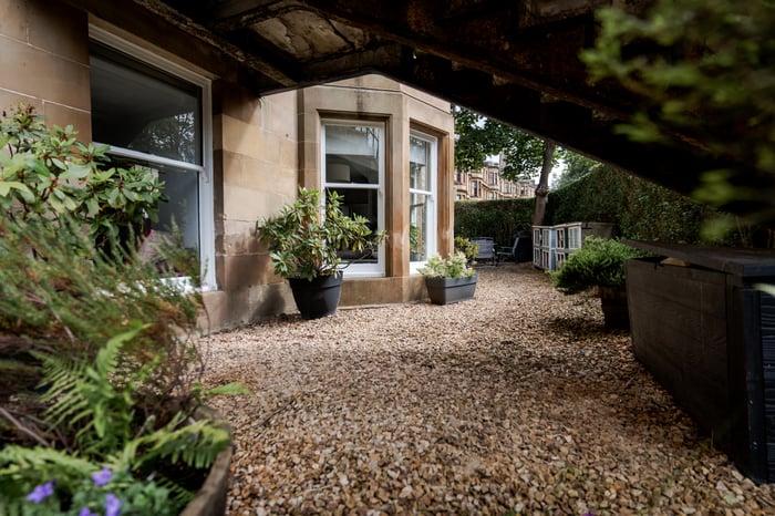 Beautifully presented and exceptionally spacious, five-bedroom, garden flat, forming part of an impressive traditional stone-built. With Queen’s Park on the doorstep, this leafy street is host to some of the more desirable tenement flats in the southside. A welcoming entrance hall affords access throughout the property, including a large utility/storage cupboard, and offers ample space for furnishing and outerwear.
