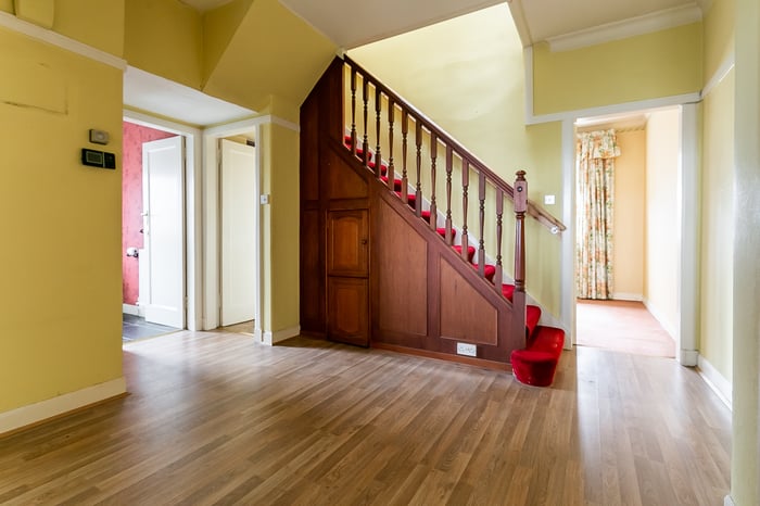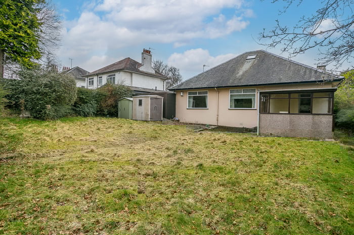 This two-storey 1930s, five-bedroom, detached bungalow offers spacious and flexible living in the prime Blackhall area, just west of Edinburgh’s city centre. Requiring cosmetic refurbishment, the property presents an exceptional opportunity to create a stunning family home. A generous entrance hall affords access throughout the majority of the property, with a front-facing lounge featuring a bay window and an exceptionally spacious room for furnishing, while a generously sized kitchen includes fitted units and worktops and leads into a southerly-facing sunroom with direct garden access. Three double bedrooms are located on the ground floor, including a front-facing room with corner aspect windows and a rear-facing guest bedroom that could serve as a dining or family room.