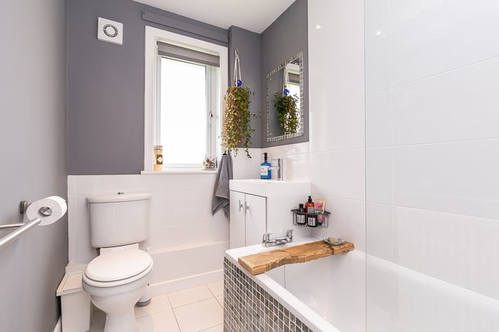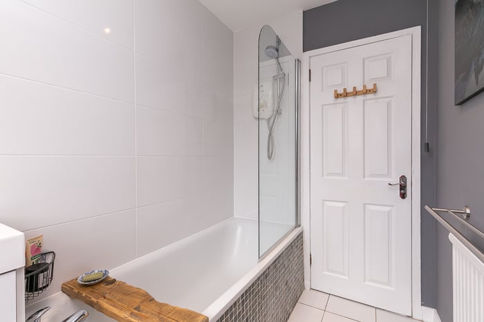 Completing the accommodation, a good-sized family bathroom features a contemporary three-piece suite, vanity storage and tiled splash walls and flooring.