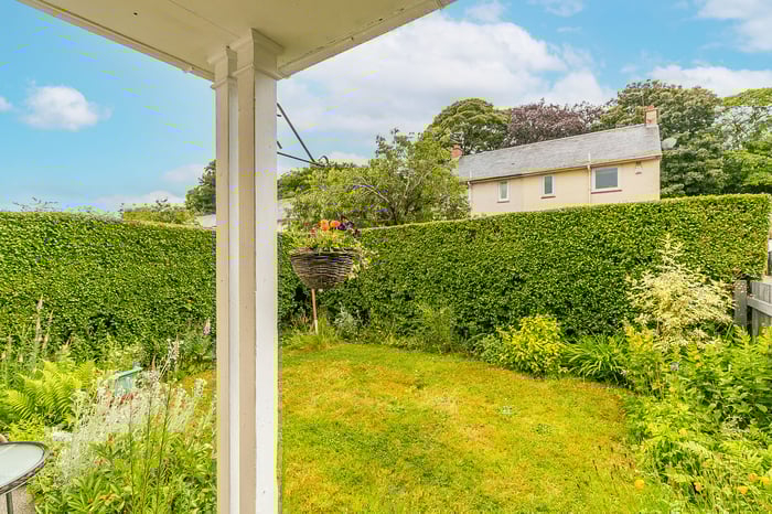 • The immaculate gardens include lawns and a mix of flowering shrubbery, a shed and tall privacy hedging.