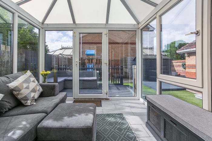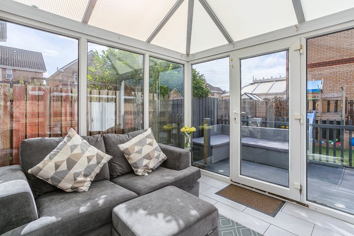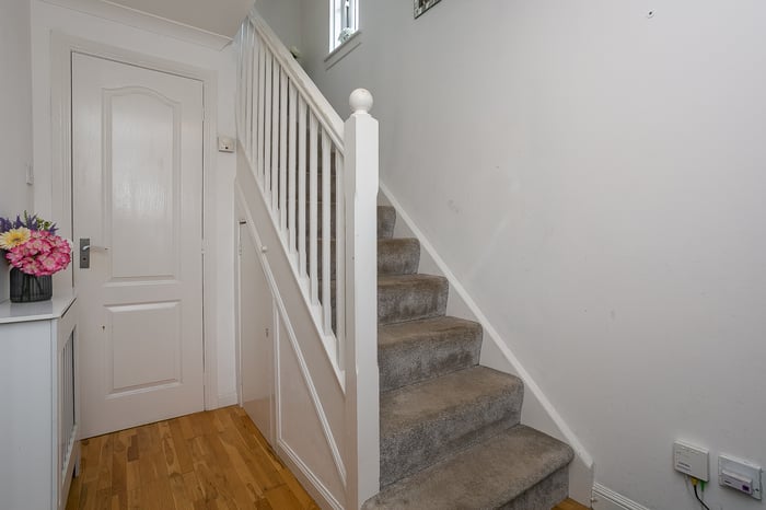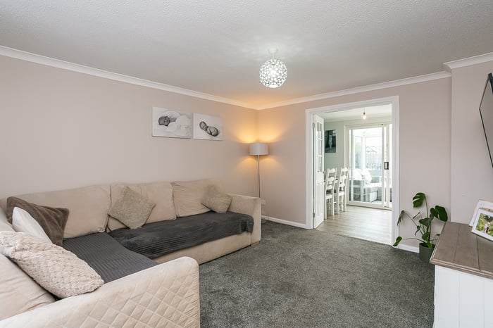 Tastefully-presented, three-bedroom, detached family home, with gardens, a driveway and a flexible annex. Set on a corner plot, in a popular, family-oriented, factored residential development, located in Port Seton, by Prestonpans, East Lothian. A welcoming entrance hall affords access to the carpeted stairs leading to the upper hall, a convenient WC, a built-in understairs cupboard and the front-facing living room, featuring a box-bay window allowing plentiful natural light, carpeted flooring and a wall-mount TV point. Set off the living room, double doors provide access to a spacious kitchen and dining, with patio doors to the conservatory, offering a further family room.