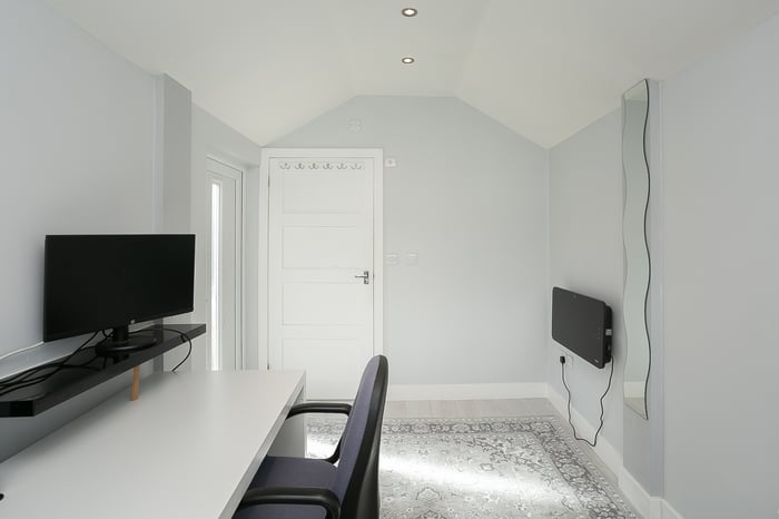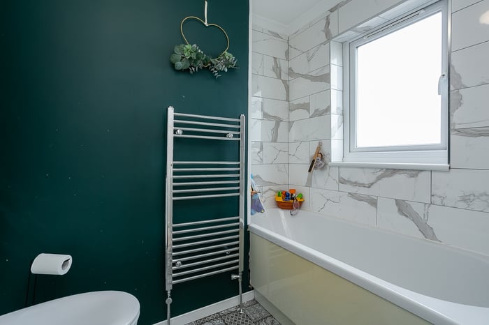 Completing the accommodation, the family-size bathroom is fitted with a modern three-piece suite including tiled splash walls and a ladder-style radiator.