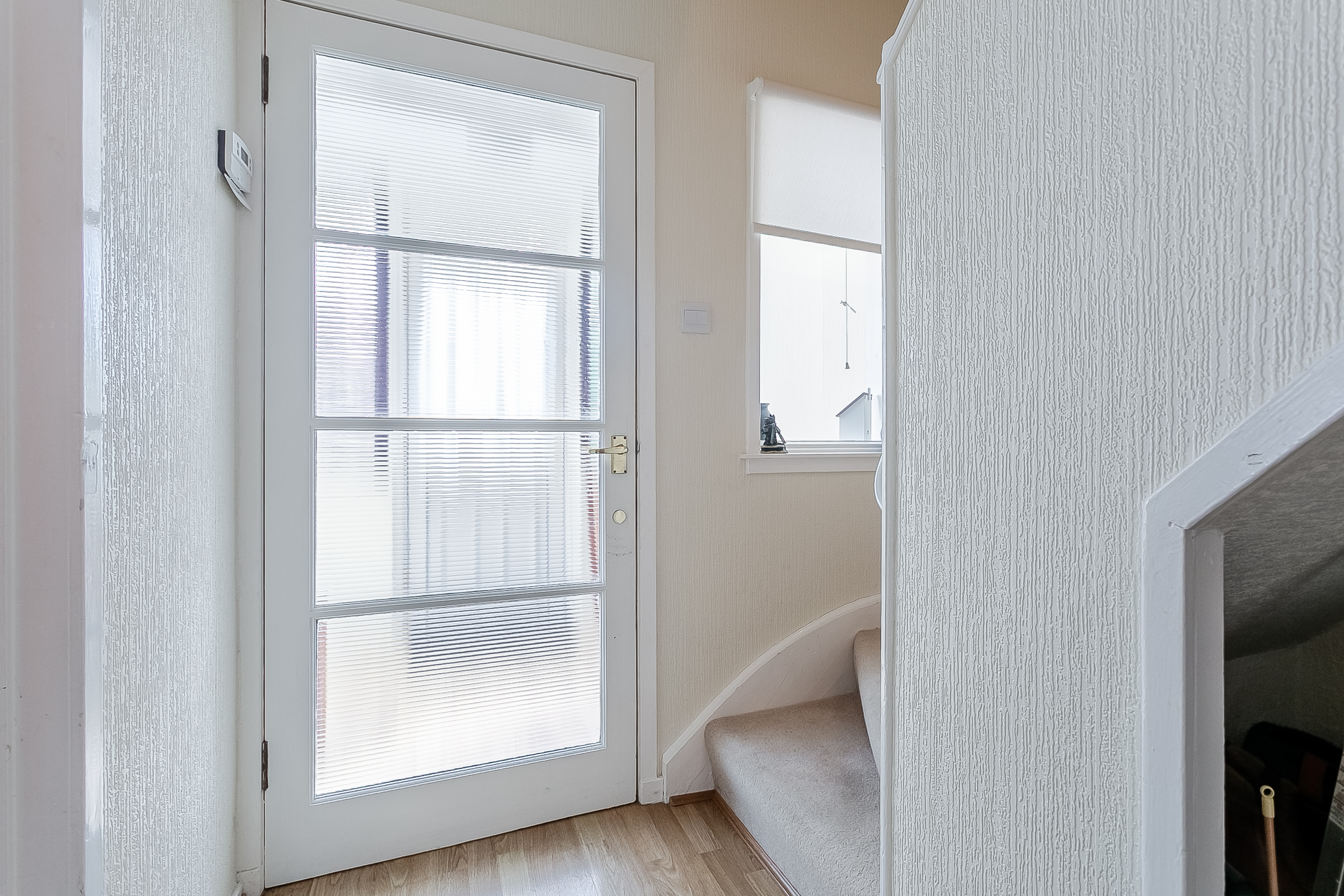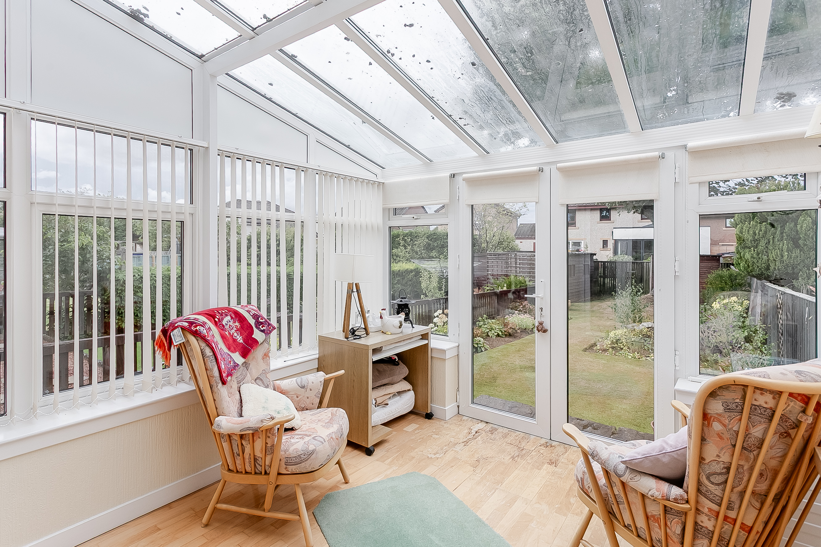 Light and tastefully presented, south-facing two-bedroom, mid-terrace home, with immaculate gardens. Located in the sought-after Currie area, southwest of Edinburgh centre. A welcoming porch opens into the hall, providing access throughout the ground floor, including a convenient understair cupboard.