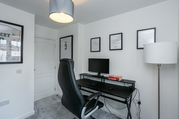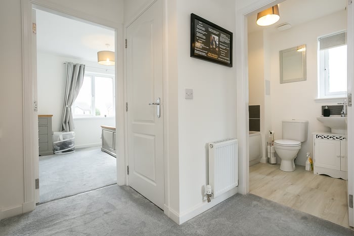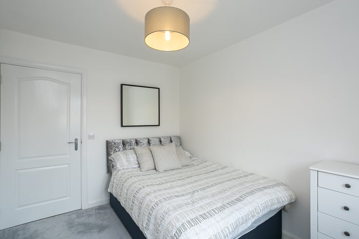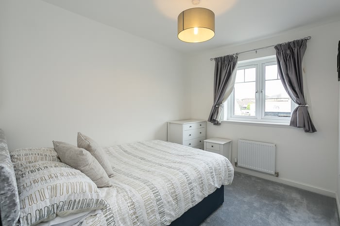 On the upper floor, bedroom one is set to the front, with light decor, carpeted flooring, a superb storage with two large built-in wardrobes; whilst two further carpeted bedrooms are set to the front, similarly well-sized and finished, with light decor. Completing the accommodation, with a side aspect window, the bathroom is fitted with a modern three-piece.