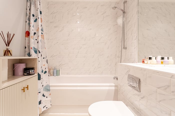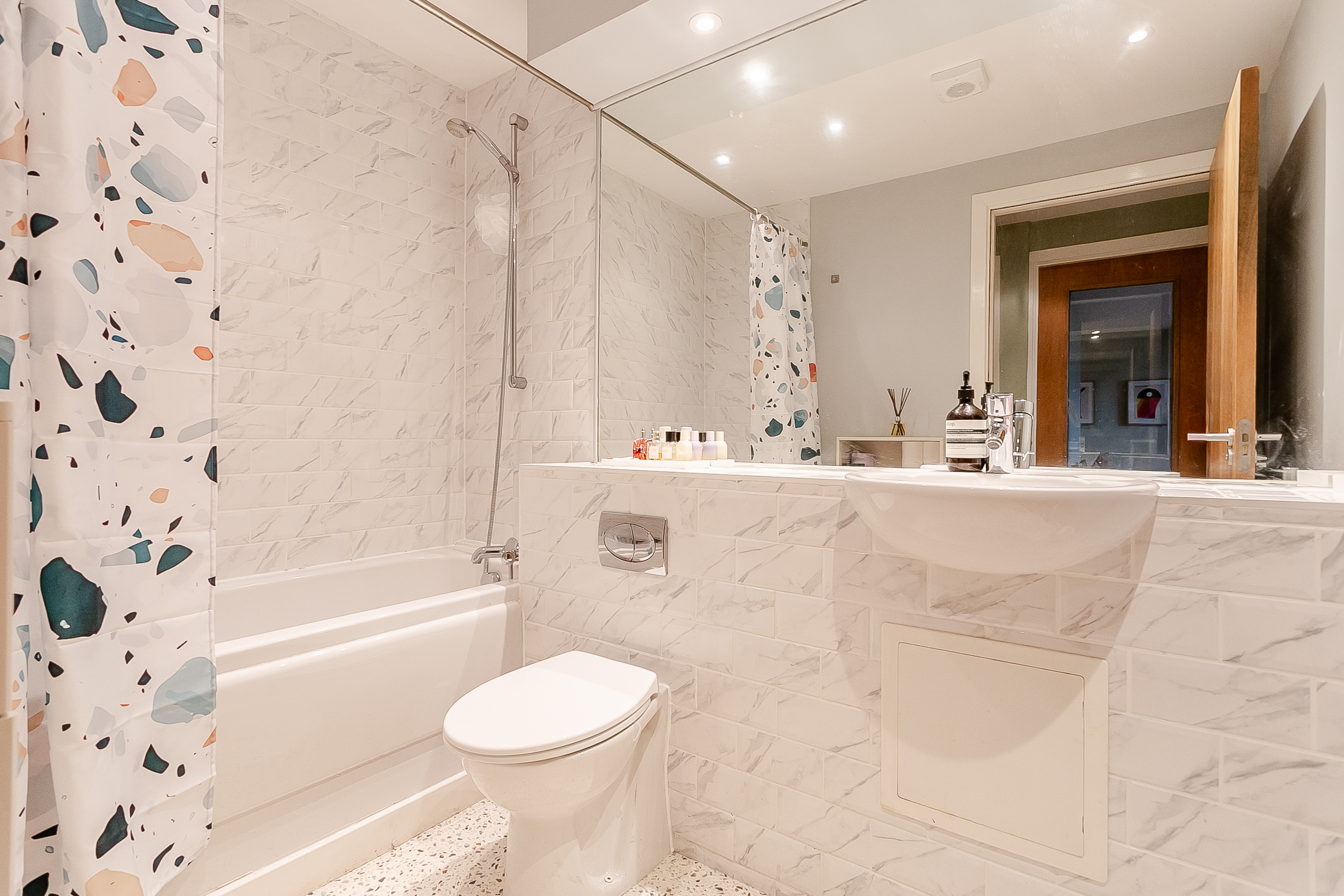 Completing the home is the modern bathroom, fitted with a three-piece suite including a shower over the bath and a sleek ladder-style radiator.