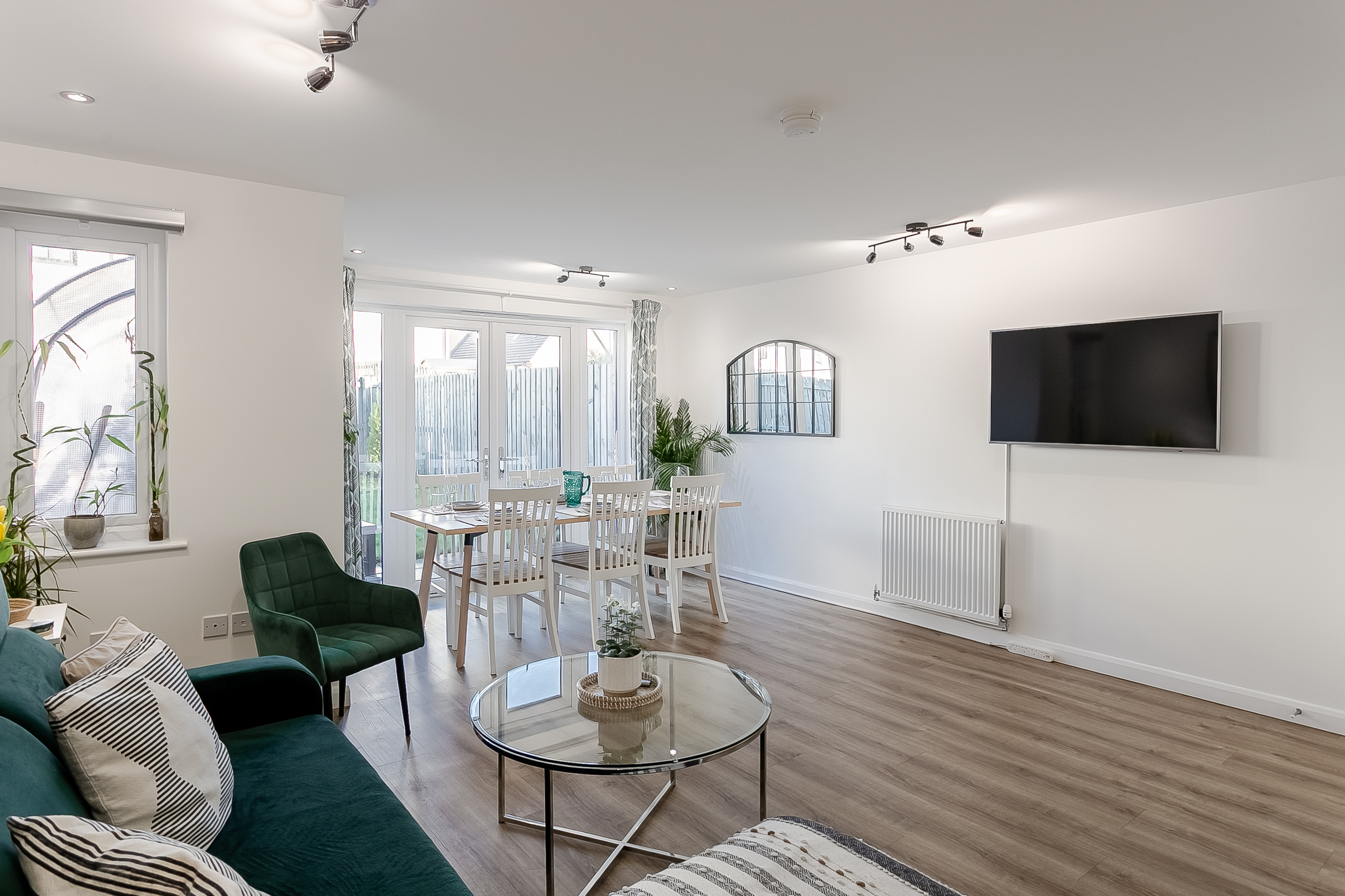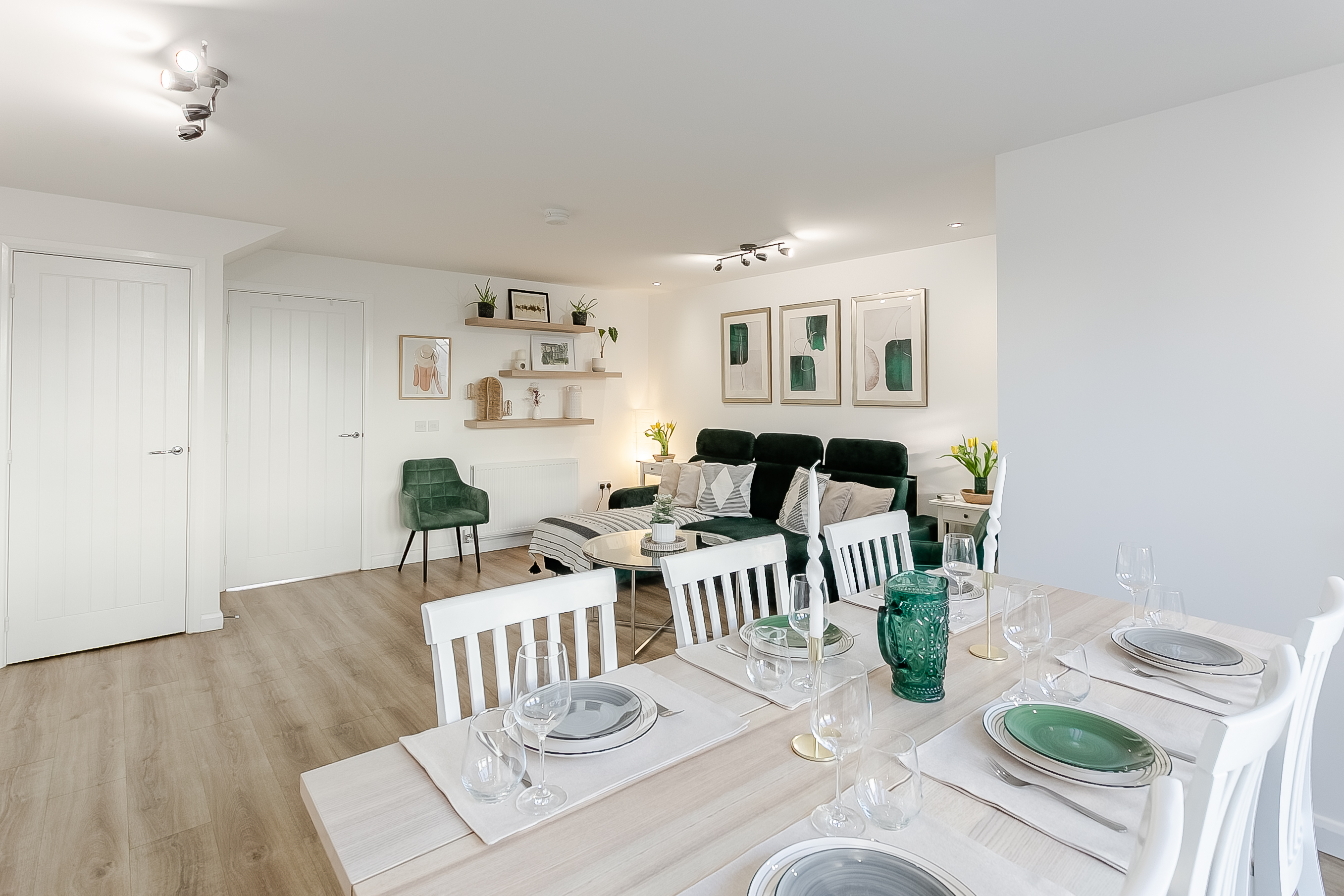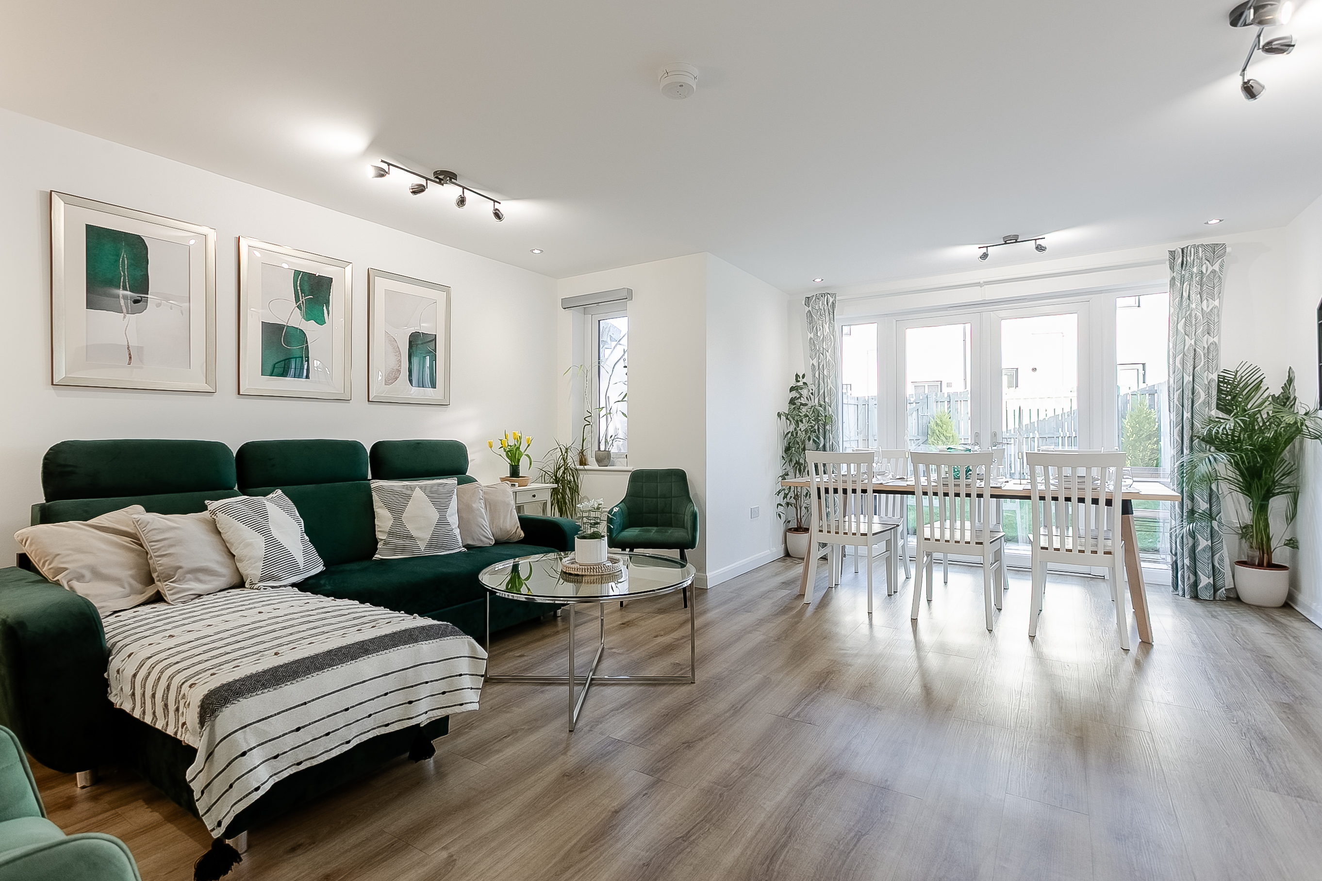 The welcoming entrance hall sets the tone for the home, finished with attractive wood-effect flooring that flows seamlessly through the ground floor. From here, you are guided into the generous living and dining area, a bright, versatile space ideal for both relaxing and entertaining.