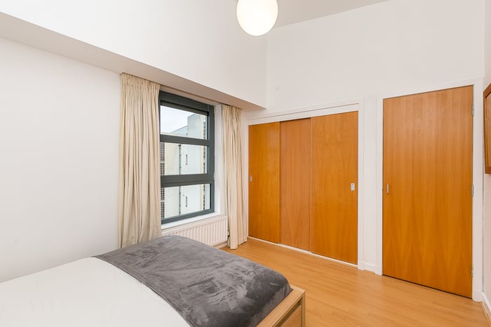 • Highlights include tall ceilings, an integrated kitchen, contemporary flooring throughout, integrated bedroom storage, and a modern bathroom suite.