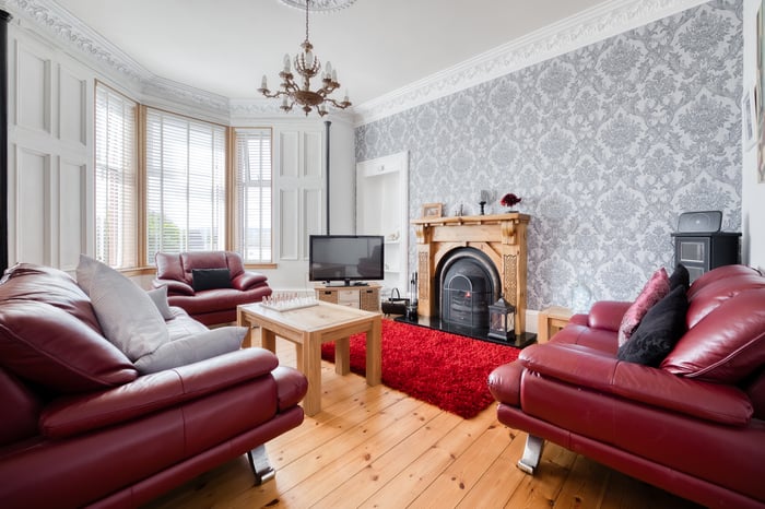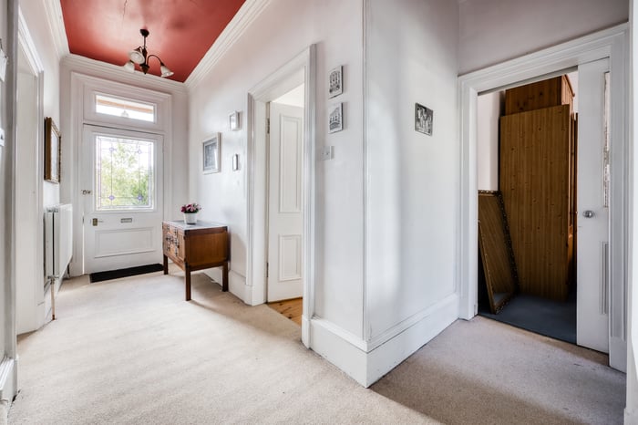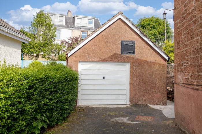 Set on a peaceful residential street in the Victorian village of Skelmorlie, this well-presented and generously sized five-bedroom detached villa blends period charm with spacious family living. Located just an hour’s drive from Glasgow City Centre, this striking red sandstone property offers a rare opportunity to acquire a substantial character home with private gardens, a driveway, and a garage. Upon entry, original wooden storm doors open into a traditional tiled vestibule, leading into a welcoming hallway with a useful storage cupboard and access to a cloakroom with further built-in storage.