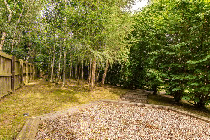 • Externally the property benefits from a beautifully kept, large rear garden with mature trees and borders, with a lawn and monobloc driveway to the front.