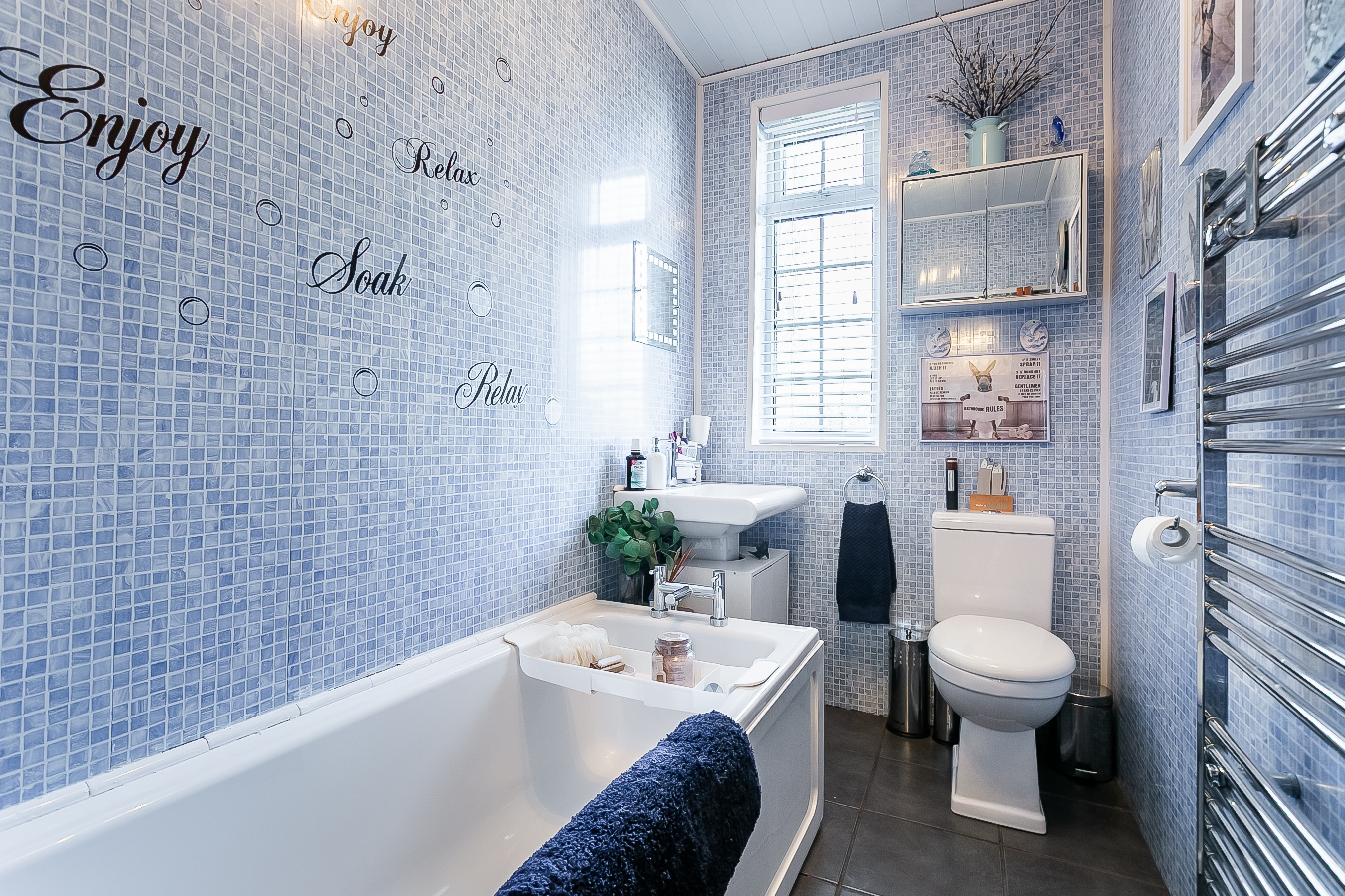 Completing this family home is the bathroom, presented as a three-piece suite with a shower over the bath.