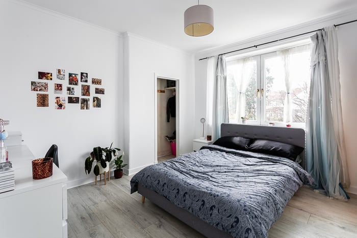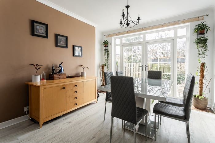 Heading upstairs provides access to bedrooms one, two and three, all finished with matching wood-effect flooring, while bedroom four continues this style and is situated downstairs. Bedrooms one and two further benefit from built-in wardrobes, ideal for storage.