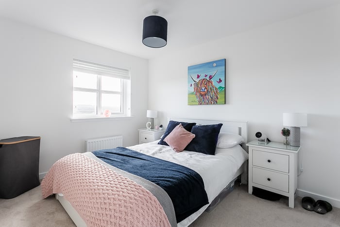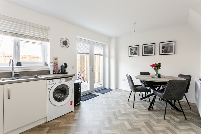 Beautifully presented and well-proportioned, three-bedroom, mid-terrace home with gardens and an allocated parking space. Set in a new residential development, located on the outskirts of Tranent, East Lothian. A welcoming entrance leads into the property and through to the living room, finished in light tones with contemporary carpeted flooring, creating a warm and inviting environment.
