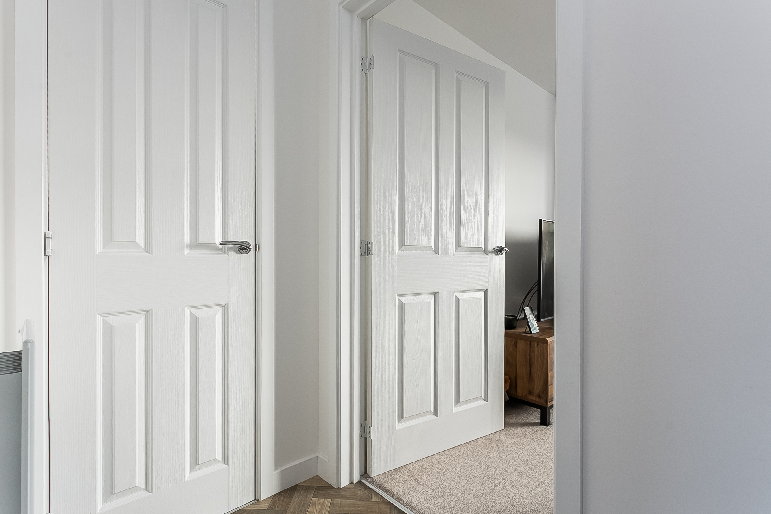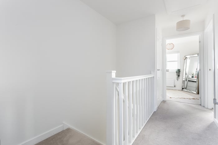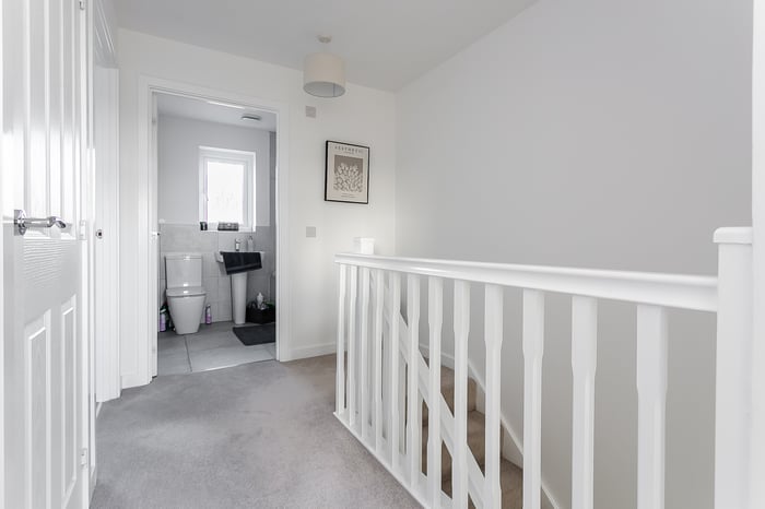 This area also provides direct access to the private garden, making it an ideal space for entertaining guests. Heading upstairs, the carpeted landing offers access to all rooms, each finished with carpeted flooring to create a cosy and comfortable feel.