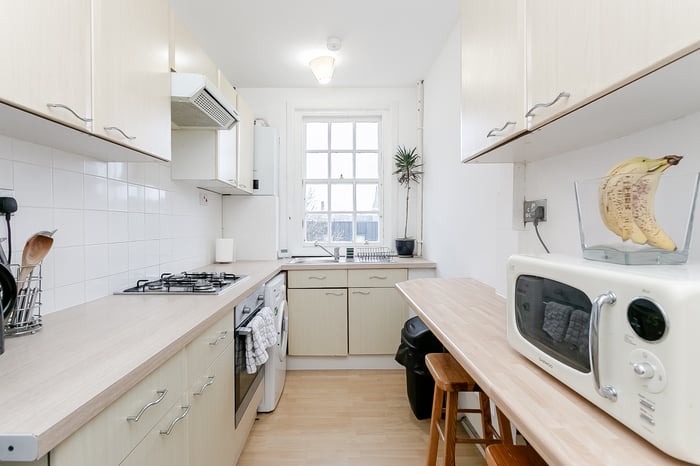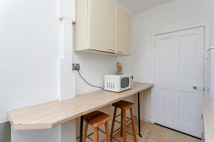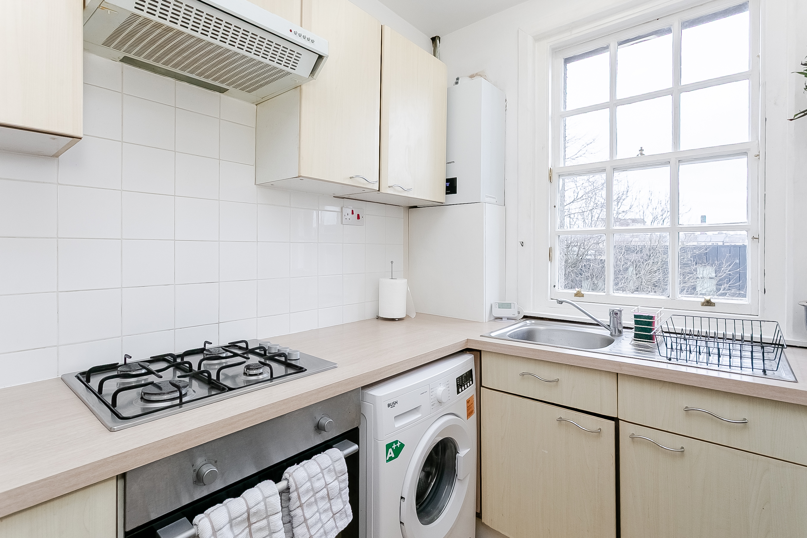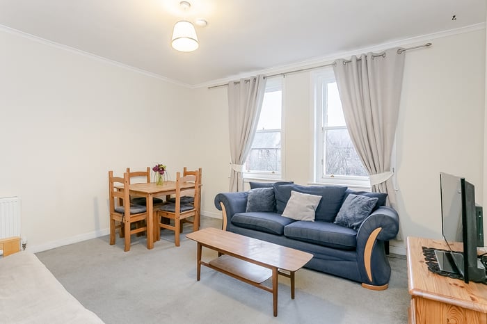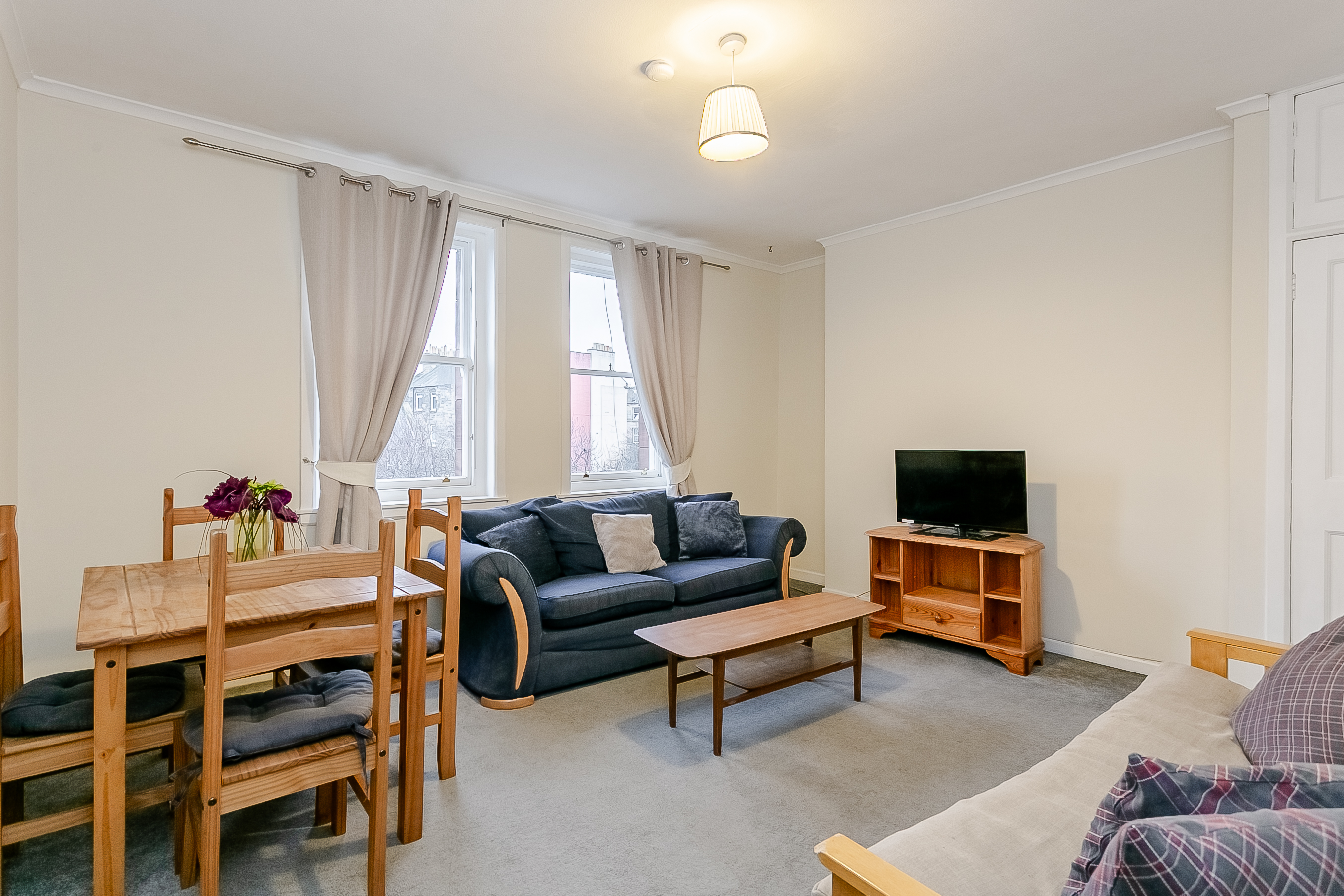 Located in the popular Leith area, north of Edinburgh city centre. The entrance hallway provides access to all rooms and leads through to the living/dining room, which is finished with carpeted flooring throughout and complemented by light, neutral décor. The kitchen features contemporary wood-effect flooring, a matching wood-effect worktop, and a stylish splashback, along with a stainless steel sink and drainer, integrated oven, gas hob with canopy extractor above, washing machine, and fridge freezer.
