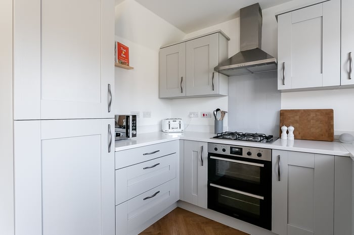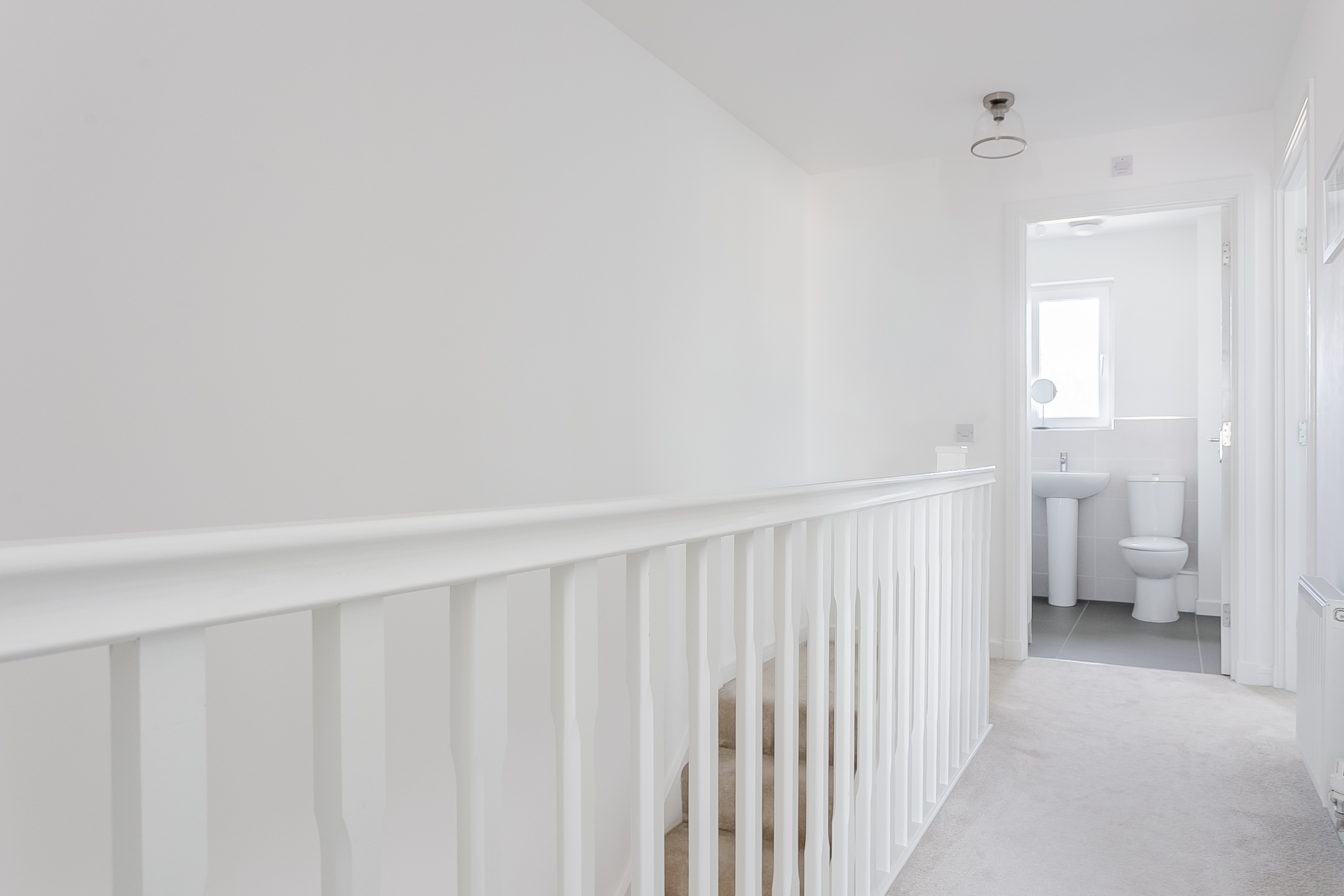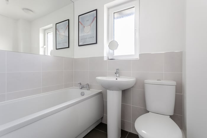 A useful built-in storage cupboard is also situated on the landing, providing additional practicality. Completing the property is the modern three-piece family bathroom, thoughtfully designed with tiled flooring, a central light fitting and a tiled splashback surround, offering a clean and stylish finish.