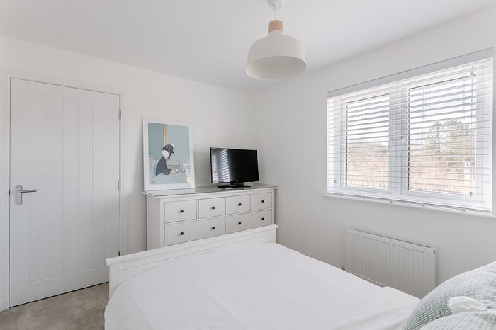 There is ample space for a double bed and additional bedroom furniture, while access to the contemporary en suite adds a touch of luxury and convenience. Two further well-proportioned bedrooms are located on the first floor, both featuring carpeted flooring and central light fittings.