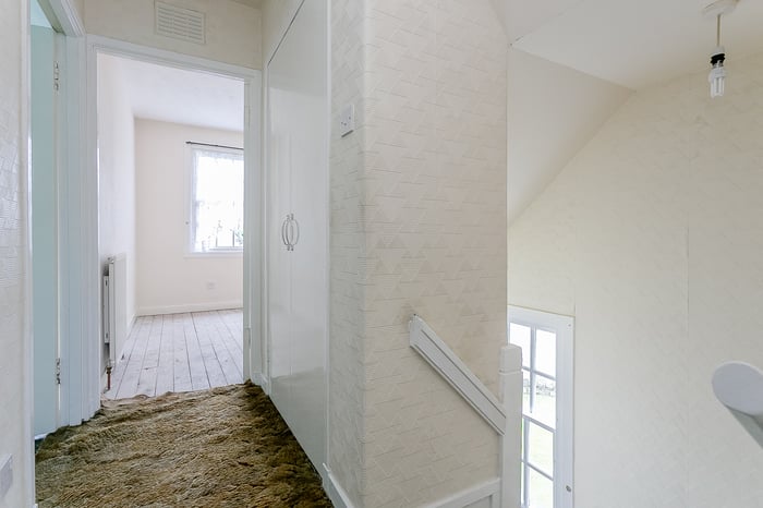Upstairs, the landing leads to three generously sized double bedrooms, all benefiting from large windows that fill the rooms with natural light, while the main bedroom also includes built-in cupboards for added convenience. Completing the home is a modern three-piece family shower room, featuring a ladder-style radiator.