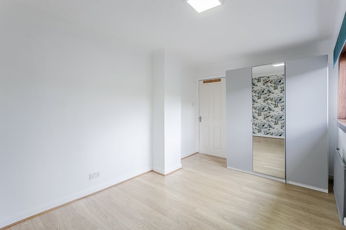 The property boasts three bright and airy bedrooms, all finished with wood-effect flooring. The principal and second bedrooms provide ample space for double beds and freestanding furniture, making them ideal for family living or guests.