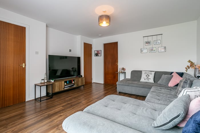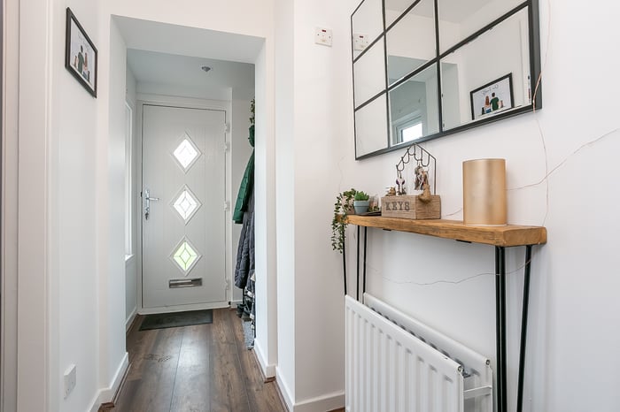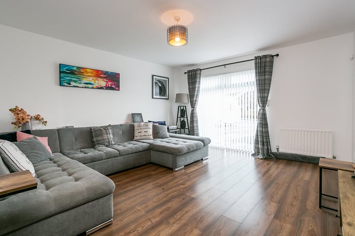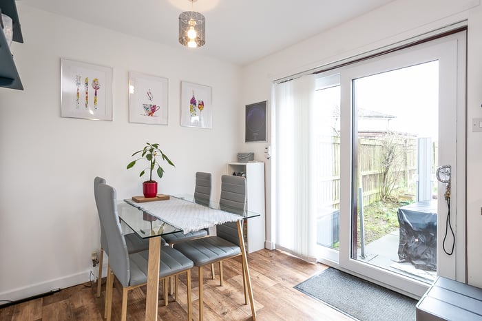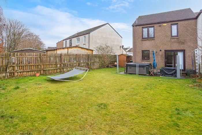 Light and tastefully presented, three-bedroom, semi-detached home with gardens and a driveway. Set in a quiet residential cul-de-sac, in the picturesque coastal village of East Wemyss, Fife. A welcoming hall affords access to the carpeted stairs leading to the upper hall; and to a bright, front-facing living room with wood-effect flooring continuing from the hall, a built-in cupboard, and a full-height window enjoying plentiful natural light. A good-sized kitchen is set to the rear and offers ample space for a dining area and patio doors leading to the garden.