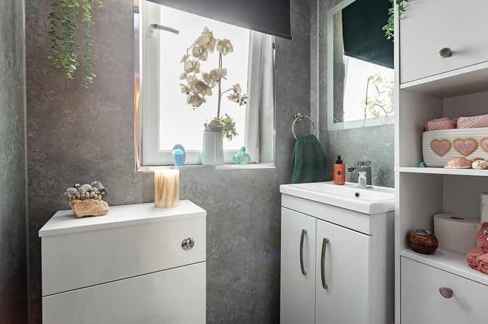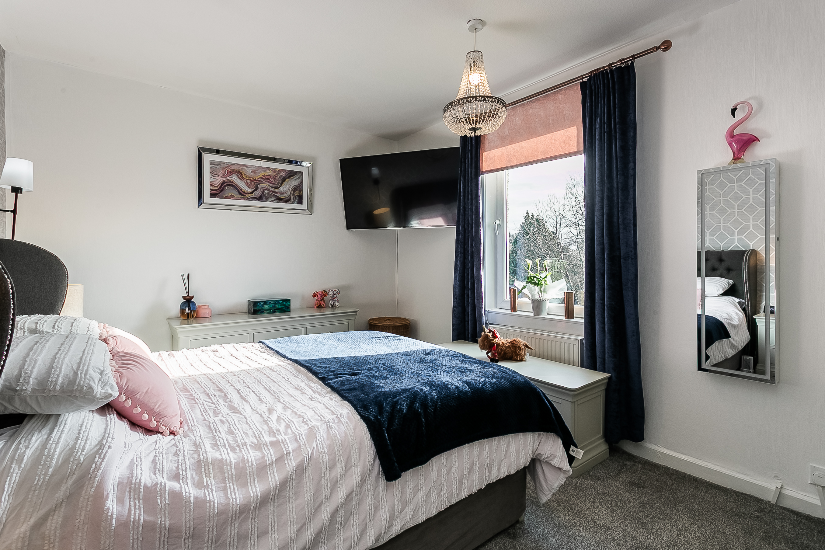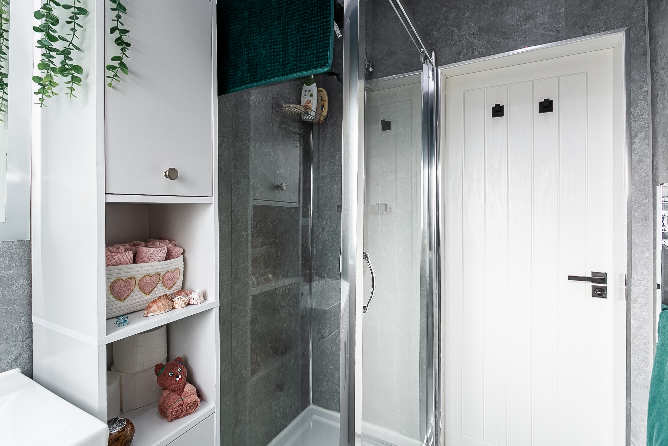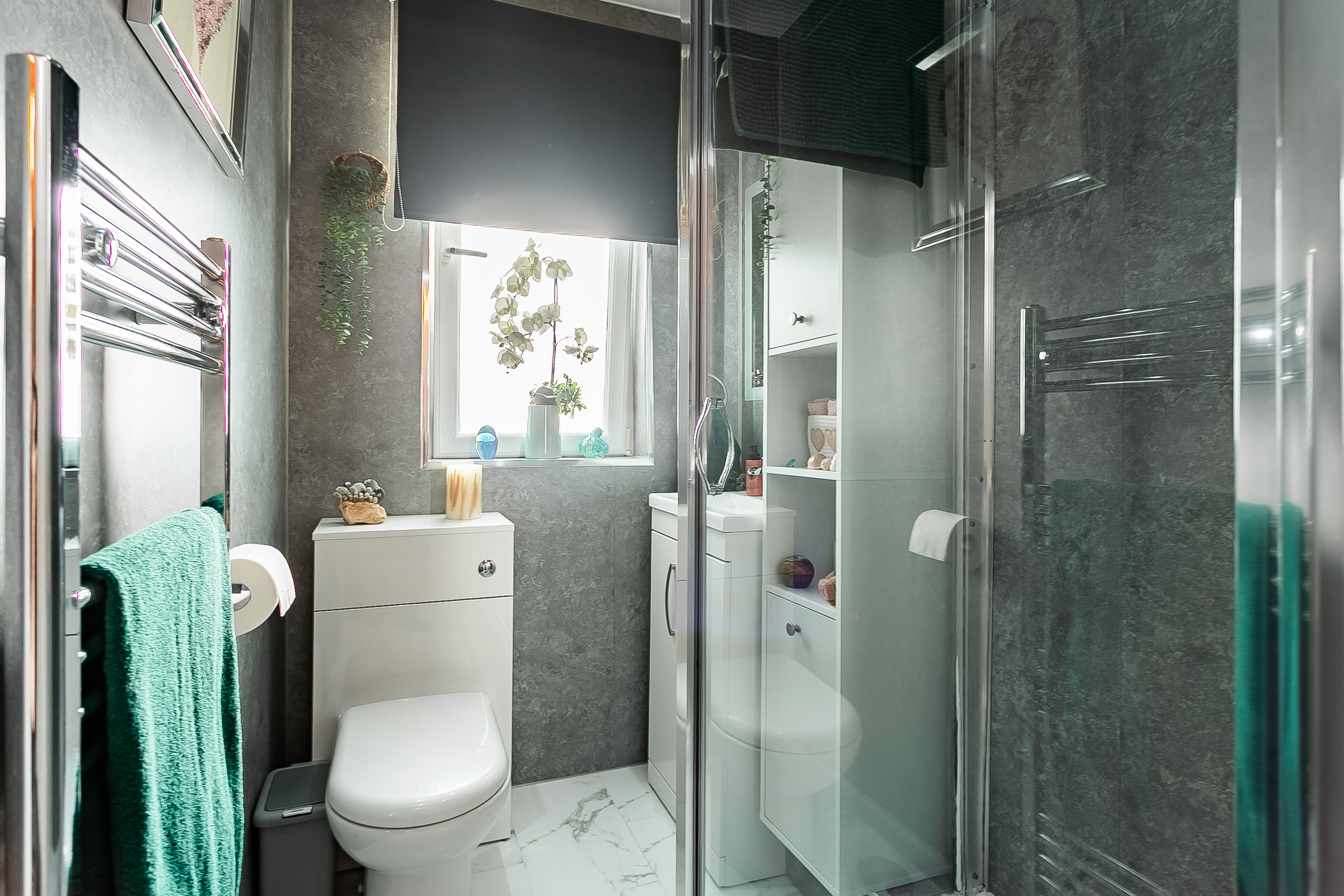 Two generous double bedrooms are well presented, set to opposite aspects, both benefiting from carpeted flooring and excellent space for freestanding furniture. Completing the accommodation, the shower room is fitted with a modern suite featuring a rainfall showerhead, panelled splash walls and a ladder-style radiator.