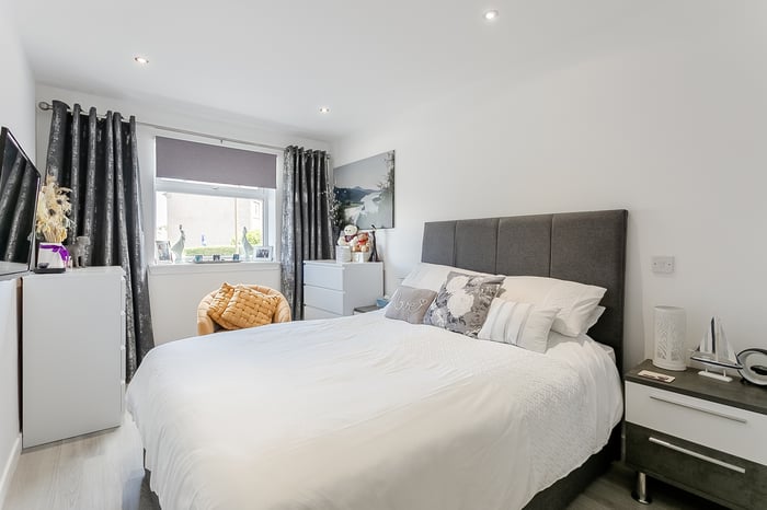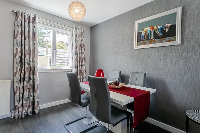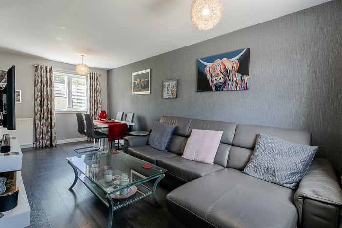 Beautifully presented and extended, three-bedroom, semi-detached home, with gardens and a driveway. Located in a quiet cul-de-sac, in the desirable and sought-after Currie area, southwest of Edinburgh centre. A welcoming entrance leads into a spacious living/dining area, complemented by wood-effect flooring throughout and double windows on either side of the living room, allowing plenty of natural light.