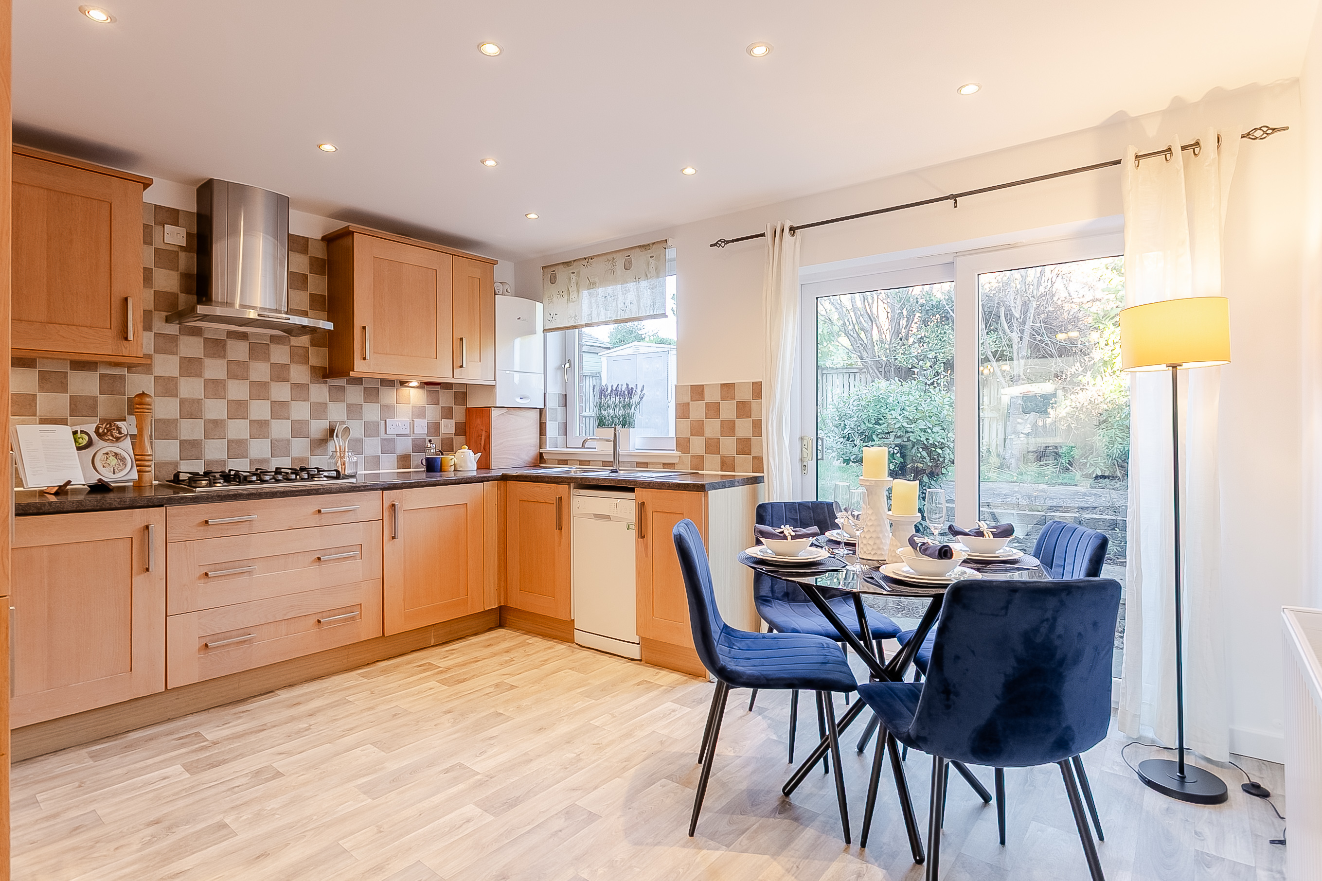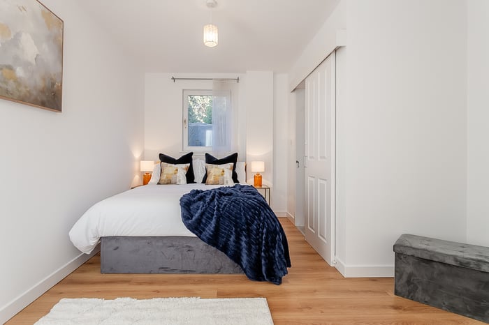 • Highlights include a modern integrated kitchen, modern bathroom suites, contemporary flooring, and fresh neutral decor throughout.