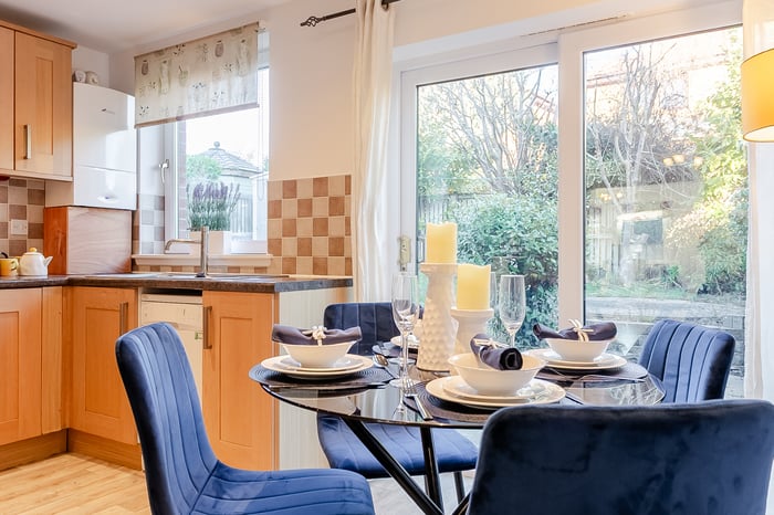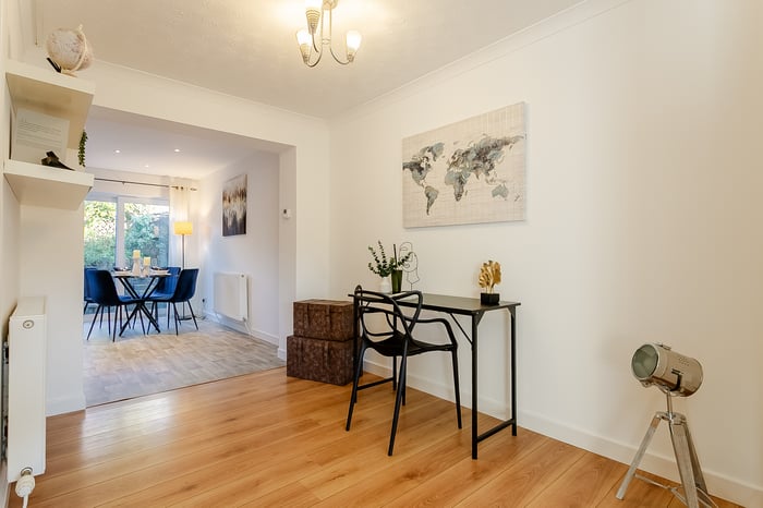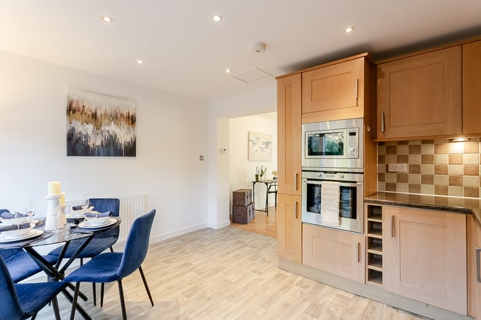 • Comprises an entrance hall, living room, dining/kitchen, utility room, three flexible bedrooms, an en-suite shower, and a family bathroom.