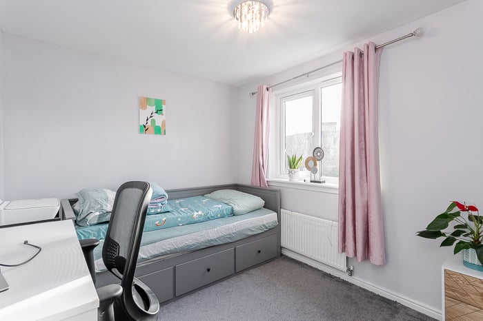 The nearby Corstorphine High Street offers a lively mix of cafes, restaurants, independent shops, and green spaces. Frequent bus and tram services provide direct access to the city centre, while South Gyle and Edinburgh Park railway stations add further convenient commuting options.