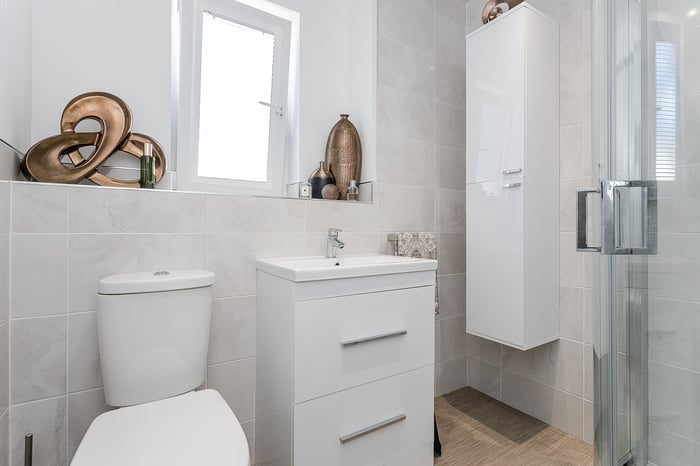 Completing the accommodation, the shower room is fitted with a stylish suite, including a MIRA shower unit, tiled splash walls and a ladder-style radiator.