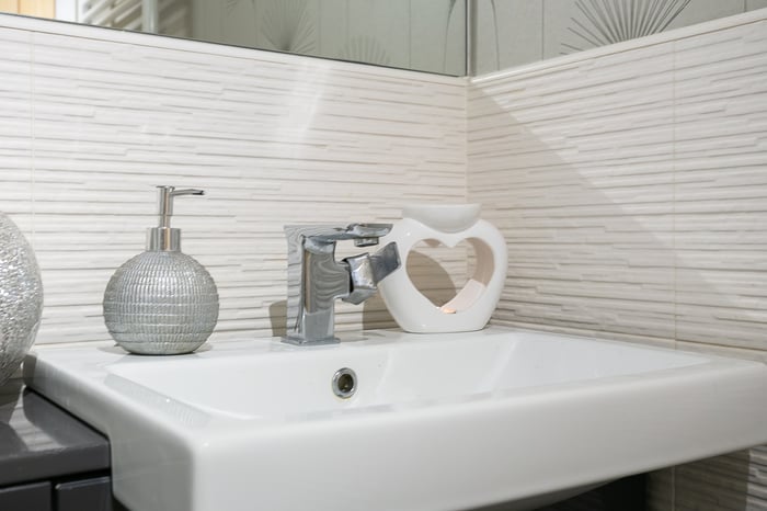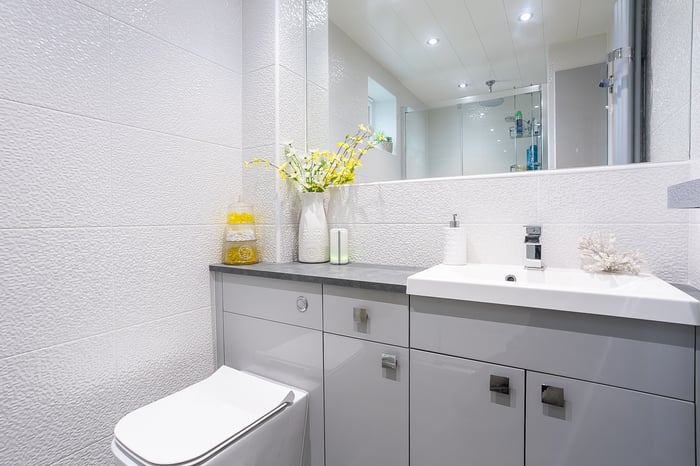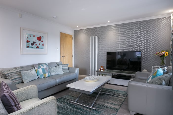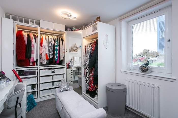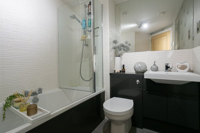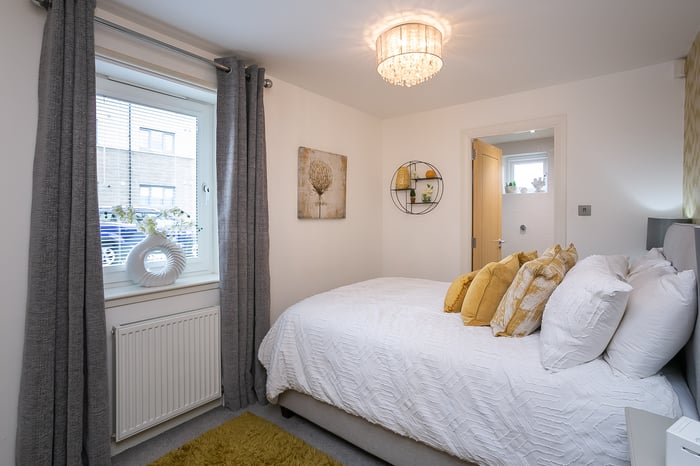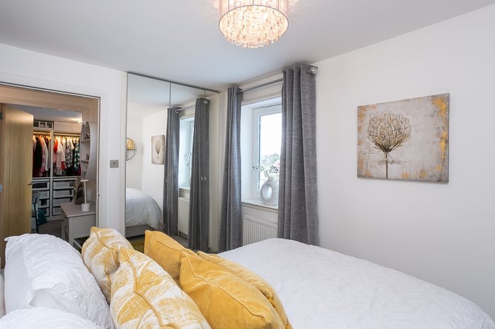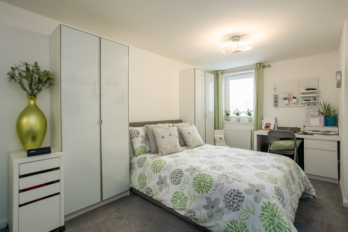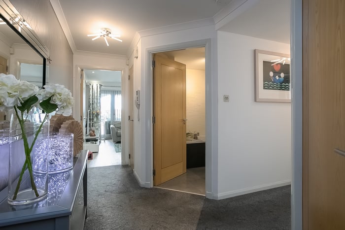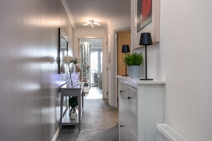 Completing the accommodation, a good-sized bathroom comprises a three-piece suite, a shower-over-bath, vanity storage, a ladder-style radiator and panel splash walls.