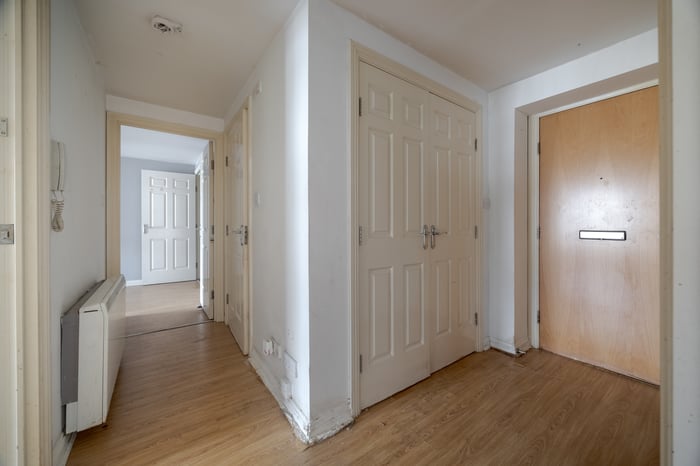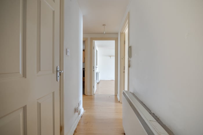 Light and spacious, two-bedroom, mid-floor flat with a private balcony, forming part of a modern residential development. A practical entrance hall provides access to all rooms within the property.