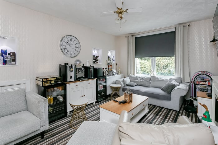 Tastefully presented and spacious, two-bedroom, upper flat, with a double driveway, garage and gardens. Located in an established residential area of the popular area of Bathgate, West Lothian. A welcoming entrance hall affords access throughout the majority of the property, with the living room set to the front, offering a spacious room for furnishing, a wall-mounted TV point and an electric fireplace. Set off the lounge, to the rear, a good-sized kitchen is fitted with wood-effect units and worktops, a tiled surround, a sink with a drainer, an integrated oven and hob, and a freestanding washing machine and fridge/freezer.