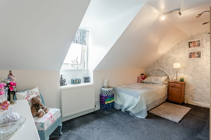 The third bedroom is set to the rear with carpeted flooring and a TV point.