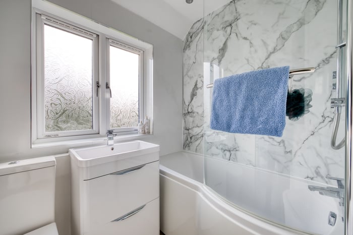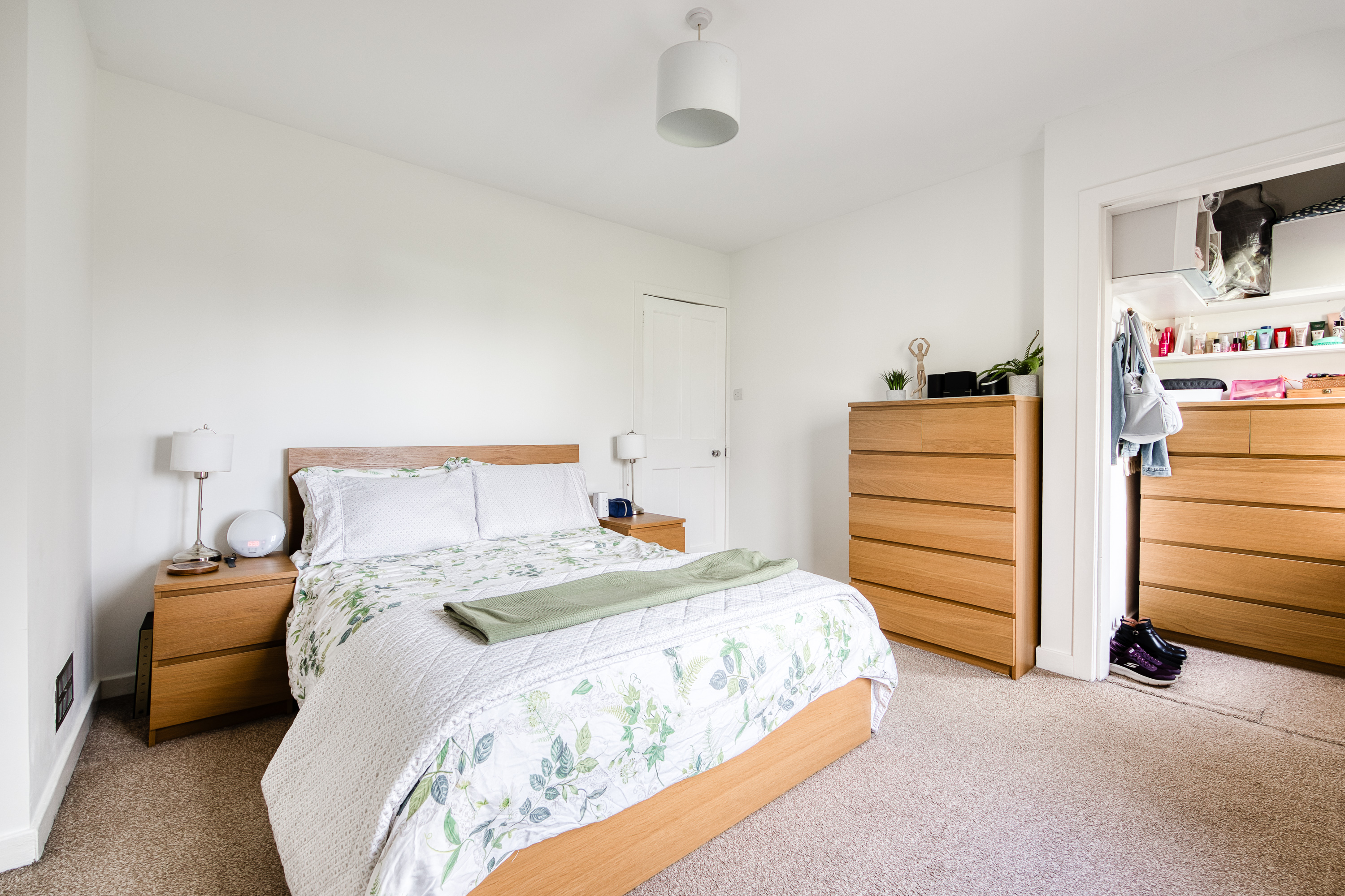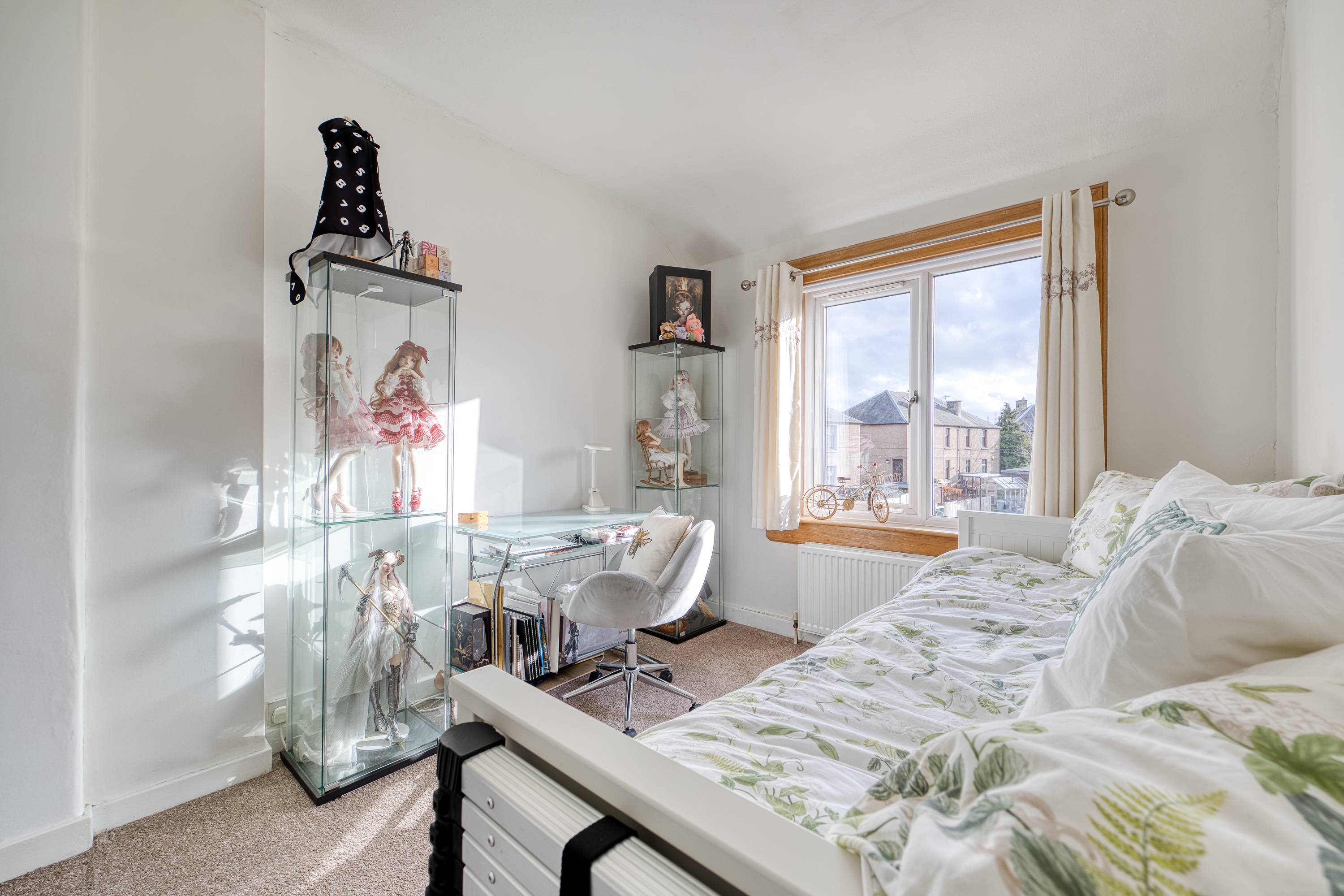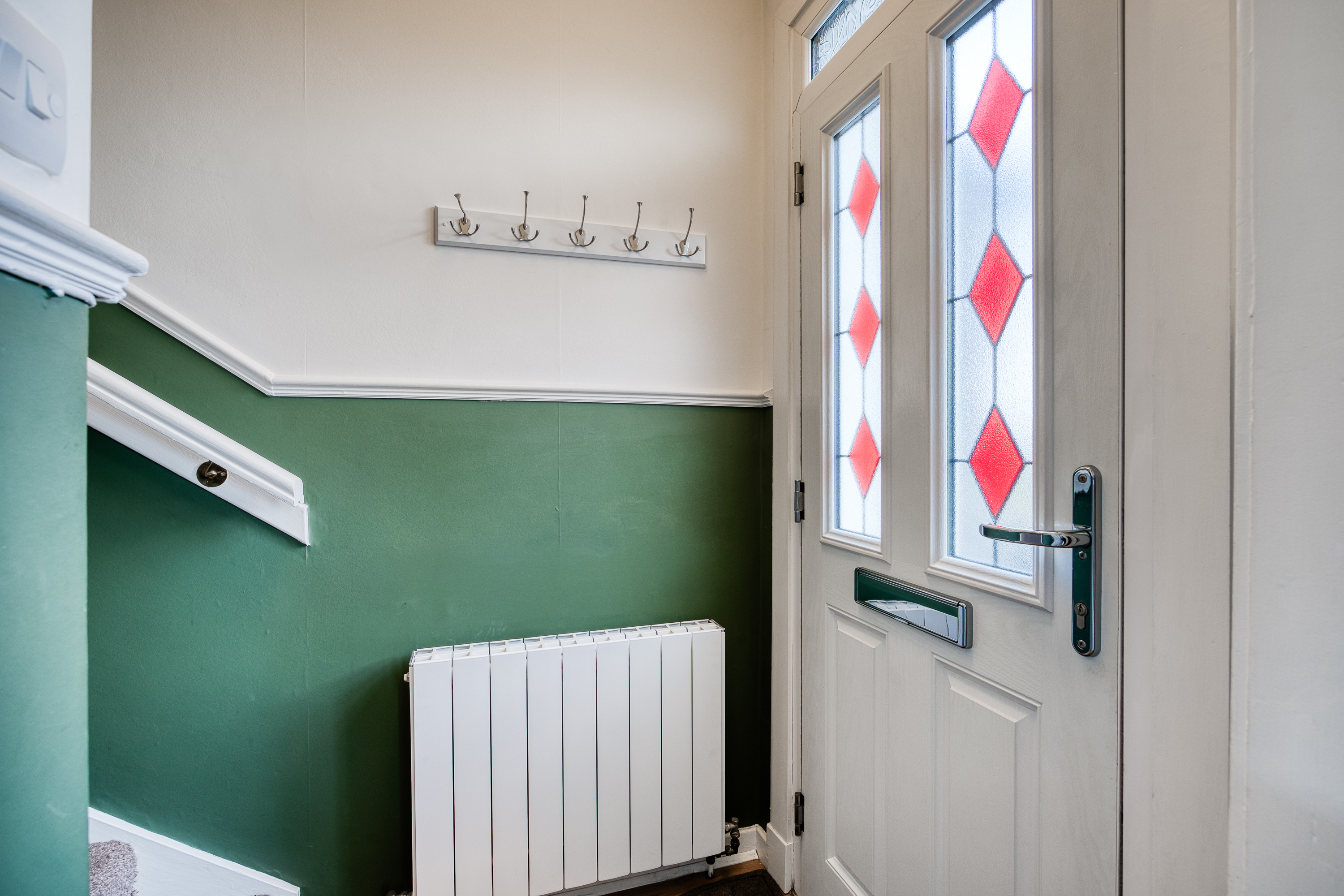 Heading upstairs, the carpeted landing provides access to the bedrooms, all finished in light tones and décor with carpeted flooring and large windows allowing plenty of natural light throughout. Completing the property is the family bathroom, presented as a three-piece suite with a P-shaped shower over the bath and a ladder-style radiator.