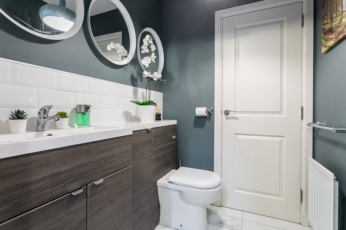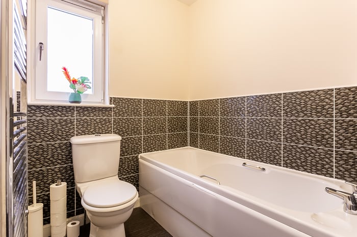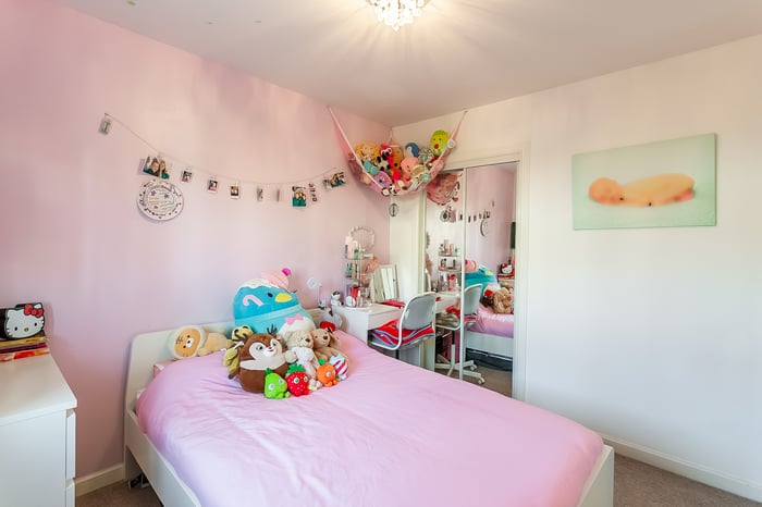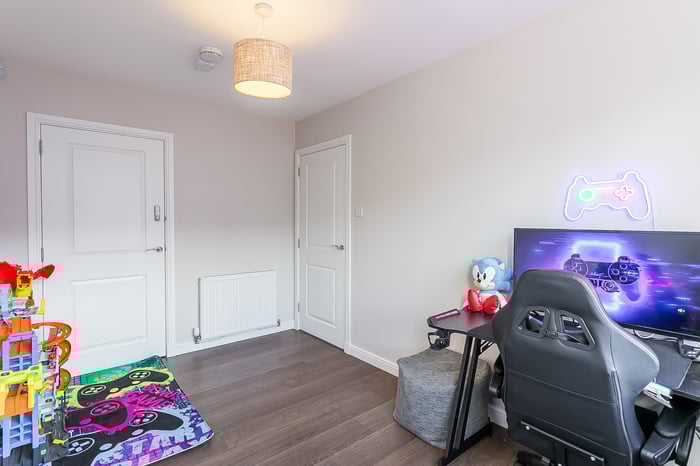 To the rear, bedroom two offers another generous room, with carpeted flooring, a built-in wardrobe with mirror sliding doors, and another en-suite shower room; whilst two further flexible bedrooms are set to opposite aspects. Completing the accommodation, the bathroom is fitted with a modern three-piece suite including tiled splash areas and a ladder-style radiator.